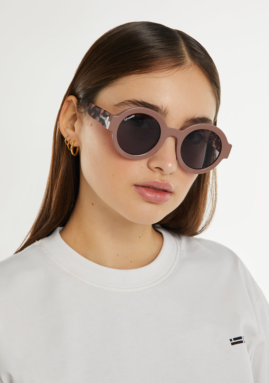 Round-rimmed sunglasses in brown tones. A distinctive piece for your most daring outfits.