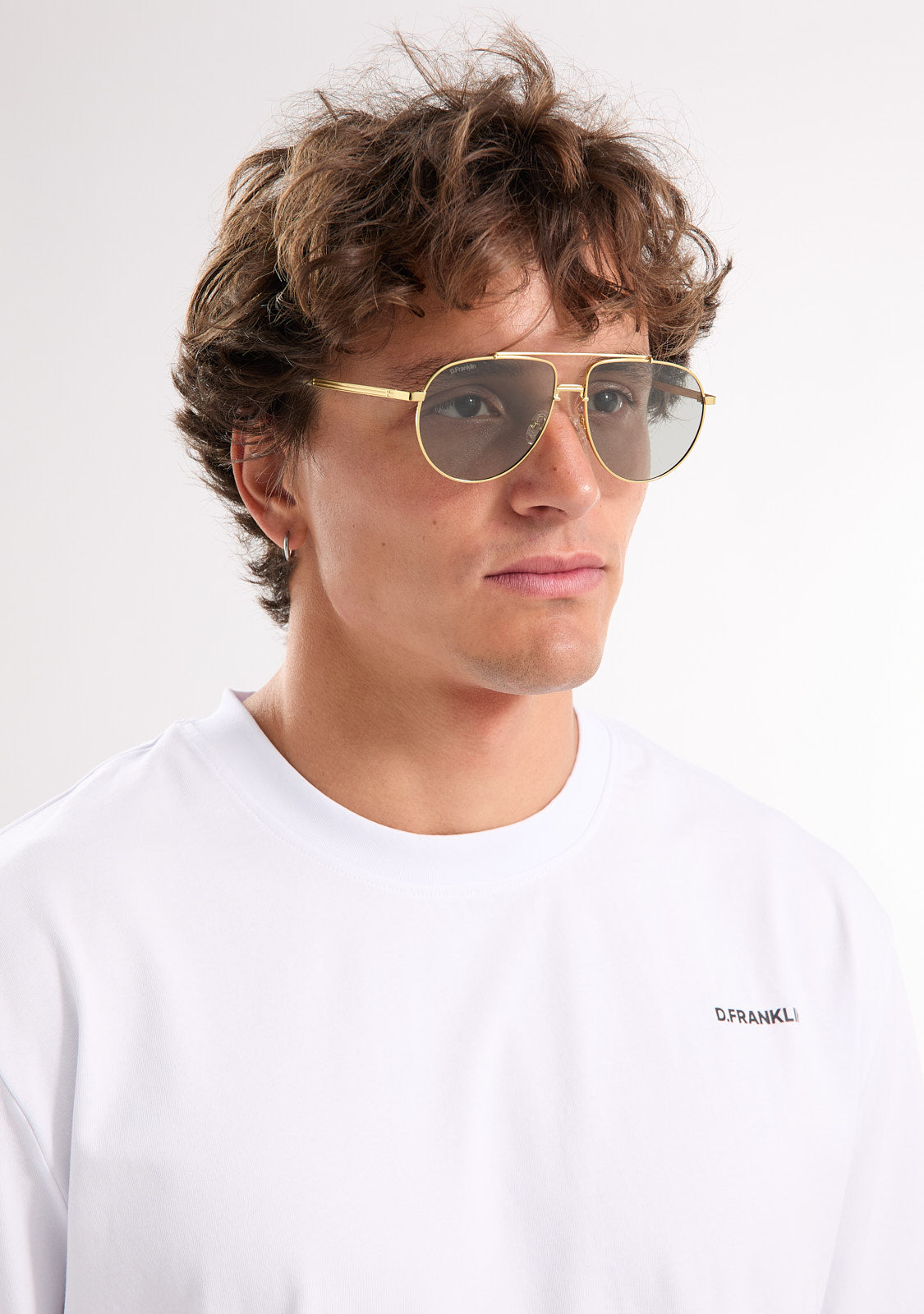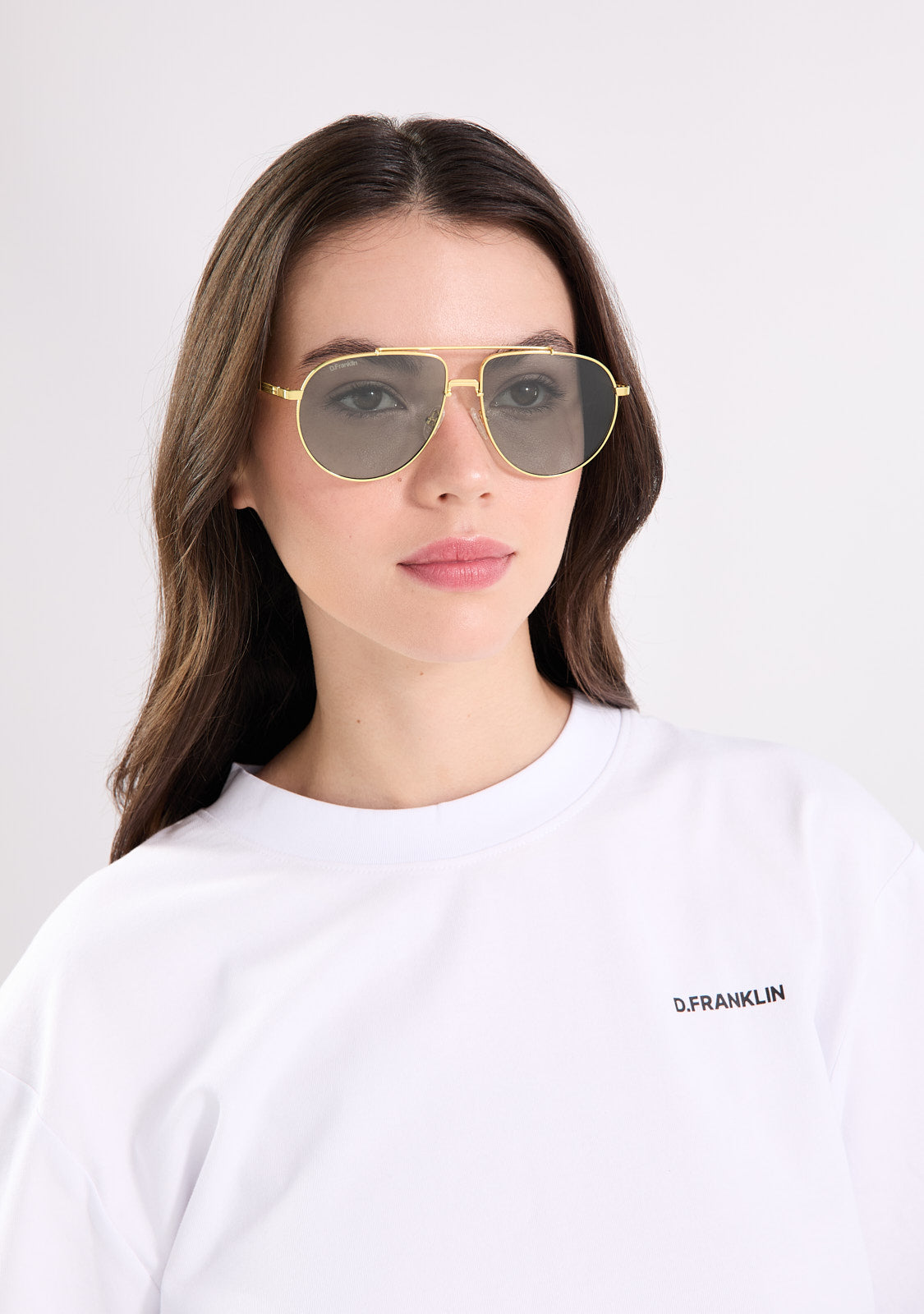 The Aviator Legacy Gold / Photochromic G15 by D.Franklin combine classic design with advanced technology, offering a unique sunglasses experience. The frame, bridge, and temples are made of durable metal, ensuring a comfortable fit for various face shapes.