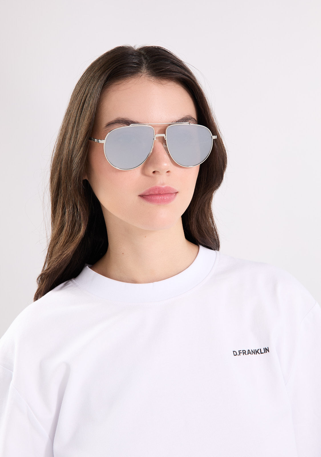 The Aviator Legacy Silver / Silver by D.Franklin are a modern reinterpretation of a classic design, blending timeless style with optimal functionality. Made with a metal frame, bridge, and temples, these sunglasses offer a sturdy structure and a comfortable fit for any face shape.