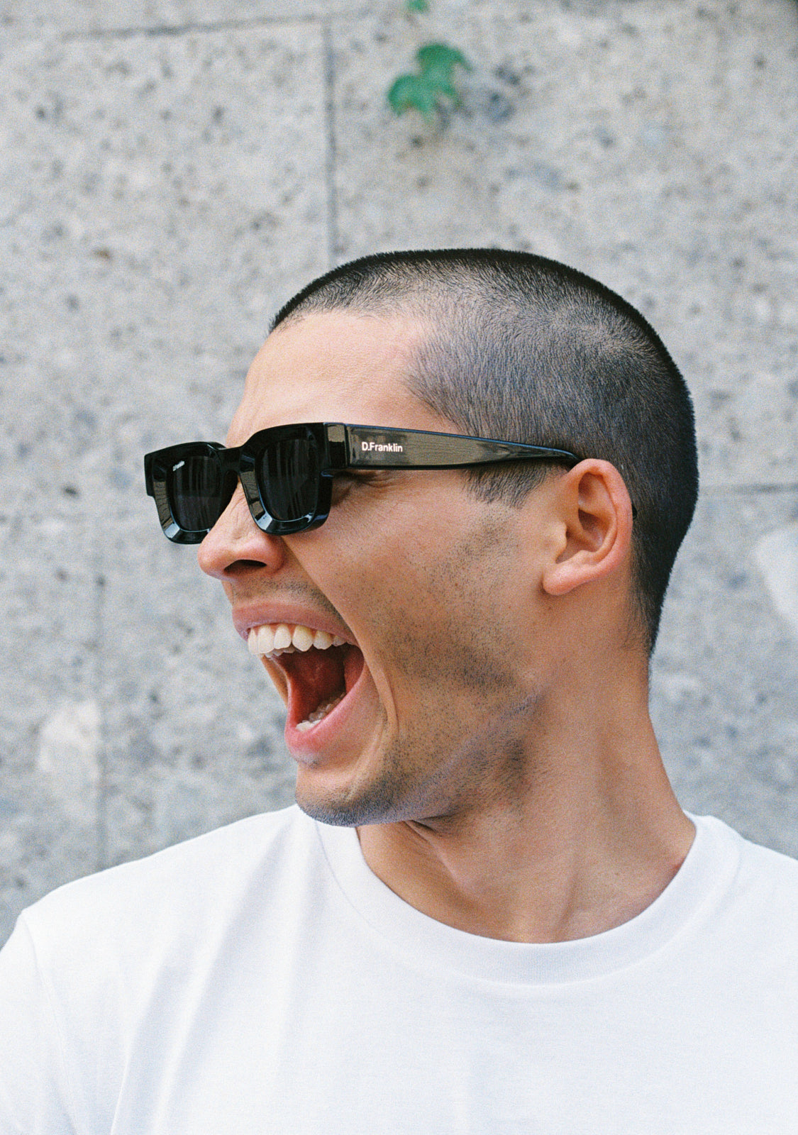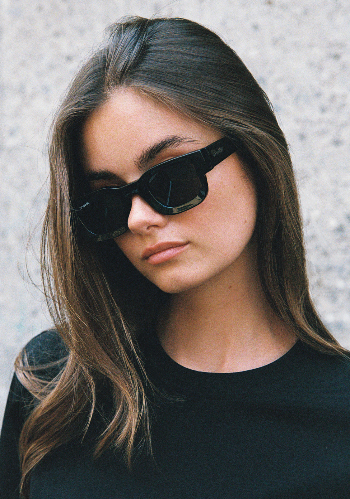 Bermuda Black Smoke is a design made from materials inspired by titanium. Thick frames and smoked lenses represent our different prisms, framed in an oversized rectangular silhouette specially designed to interact with new spaces.