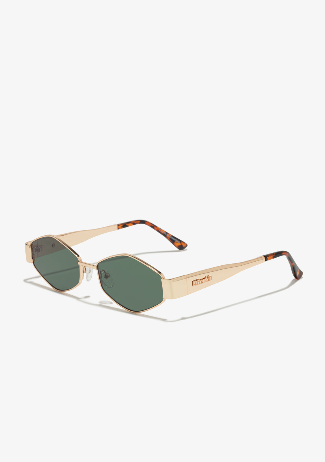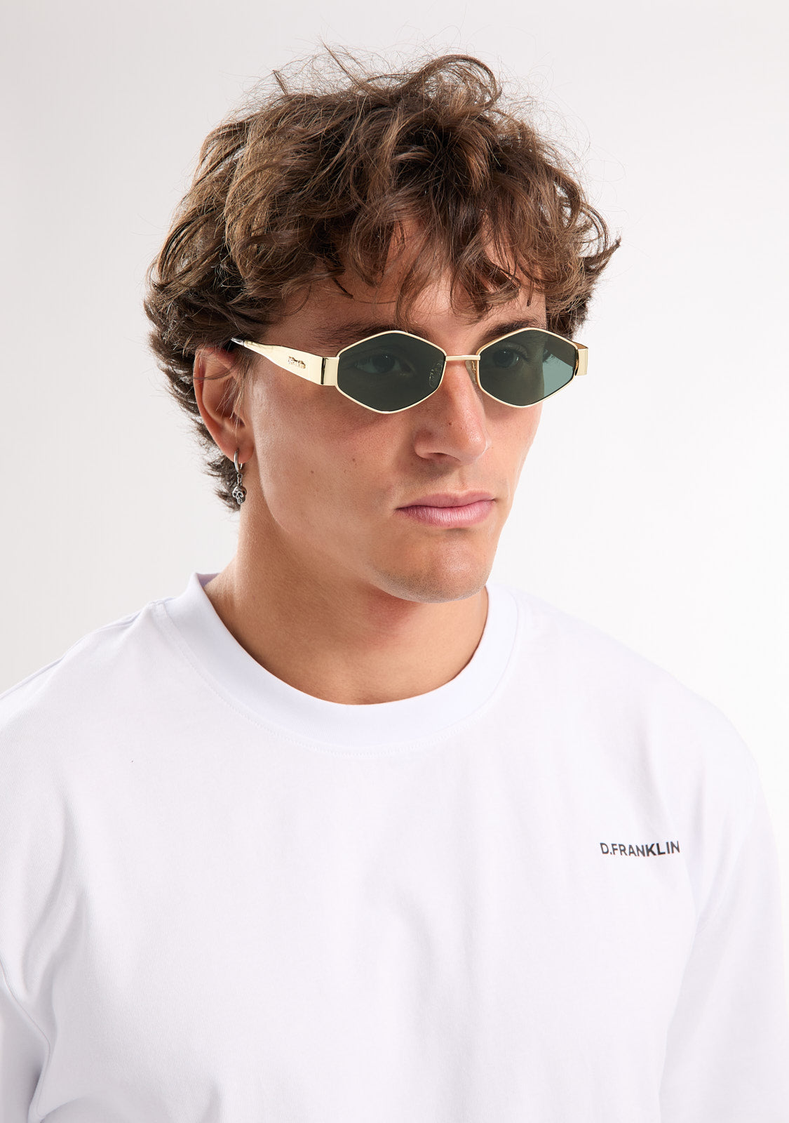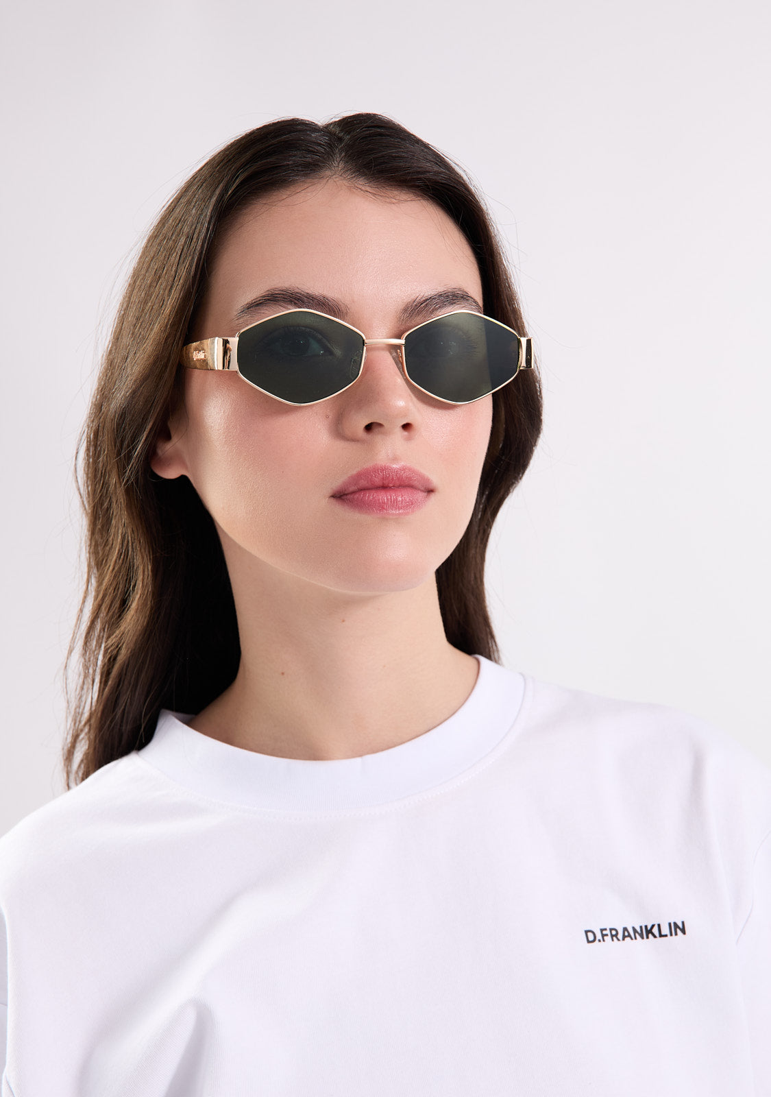 The Cuprum Cuprum Diamond Gold / G15 sunglasses by D.Franklin deliver a perfect blend of modern style and functionality. Crafted with a durable and lightweight metal frame, these sunglasses ensure comfort and longevity. Their polycarbonate lenses provide clear vision and full UV protection, keeping your eyes safe on the sunniest days.