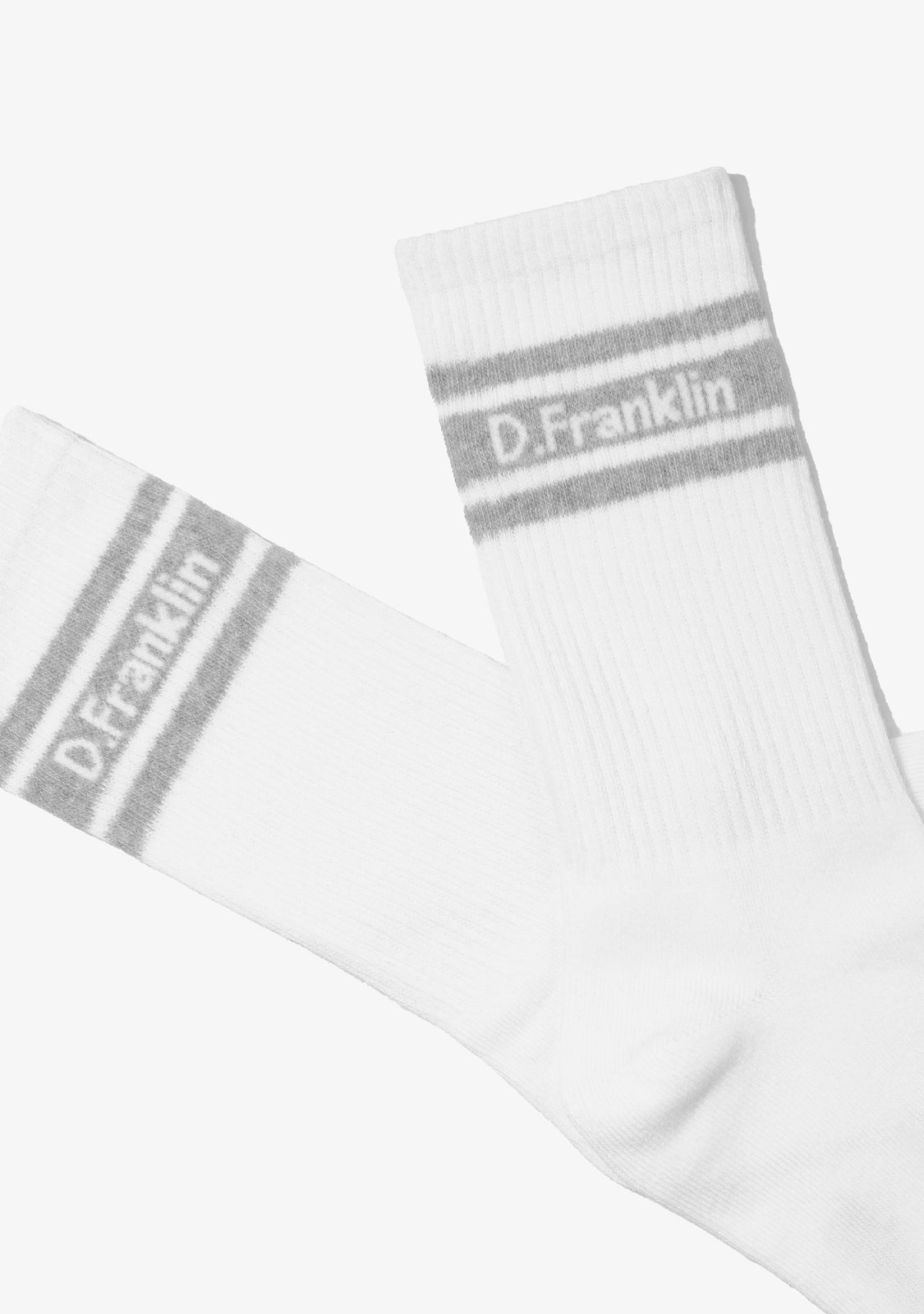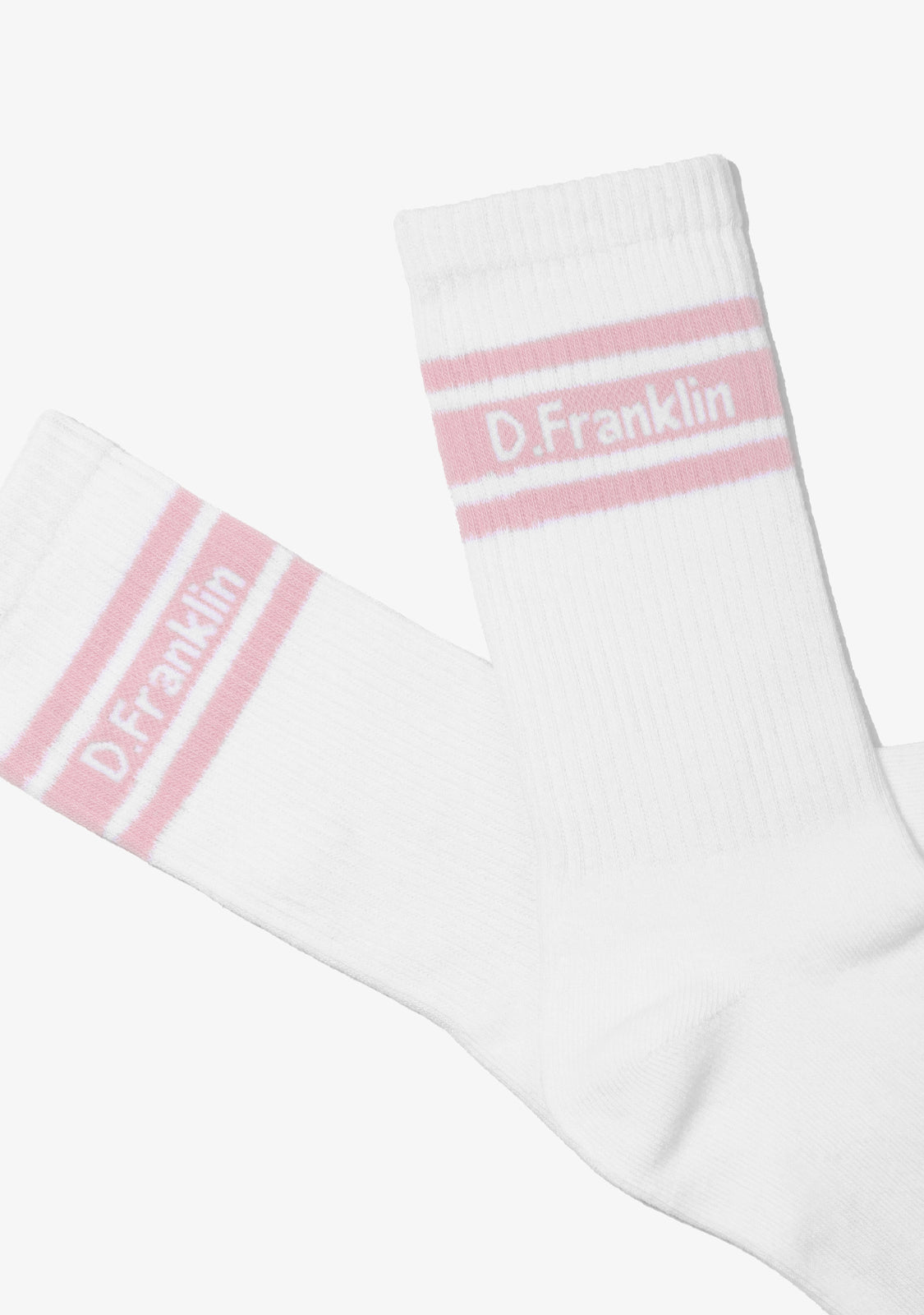 The pack includes three pairs in white, each finished with pastel stripe details in mint, grey and pink tones and D.Franklin branding for a subtle signature.