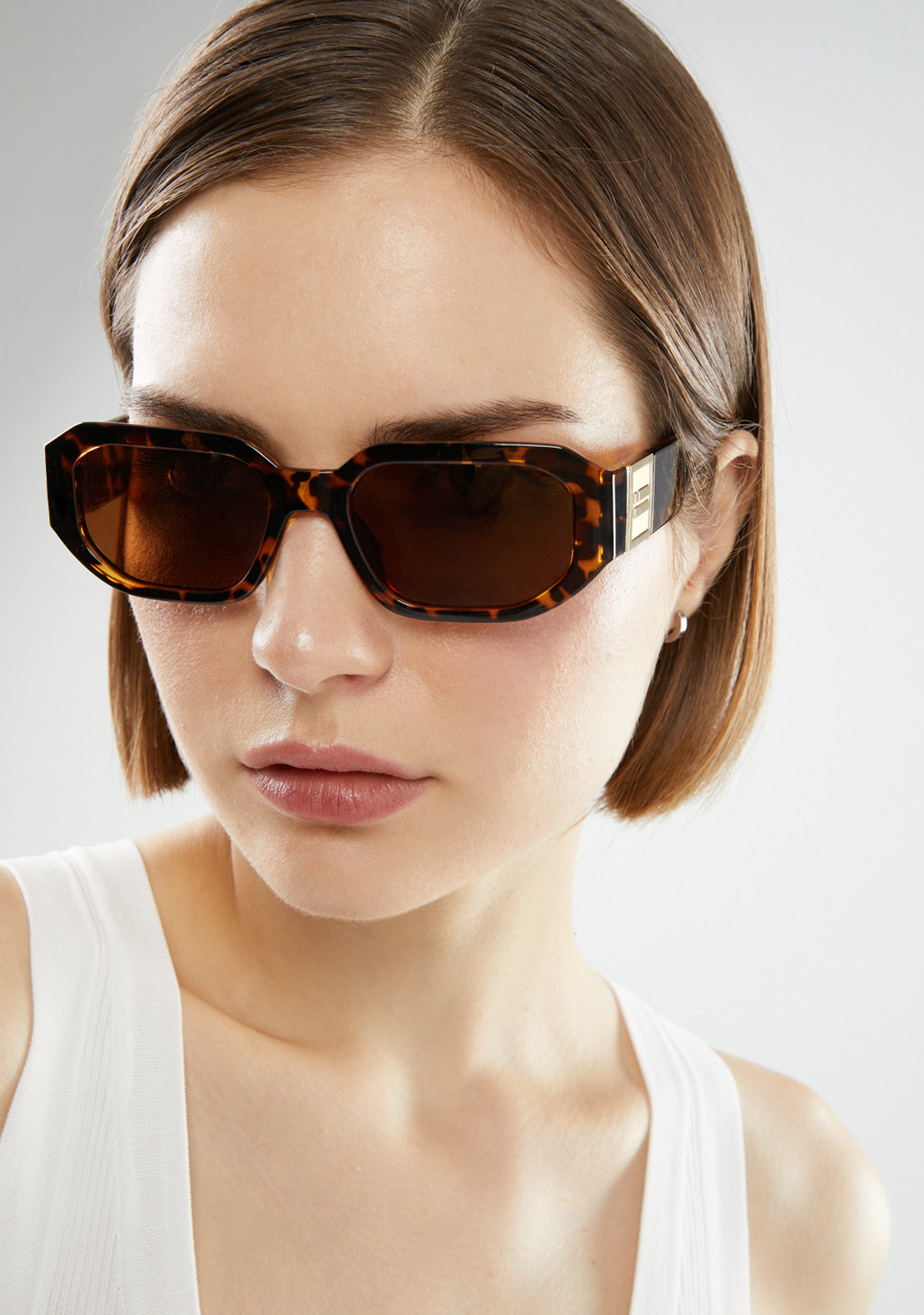 Sunglasses with geometric finishes. This design travels back to the last decades to bring us the ultimate vintage touch. Transcending the boundaries of time with a unique colour palette...