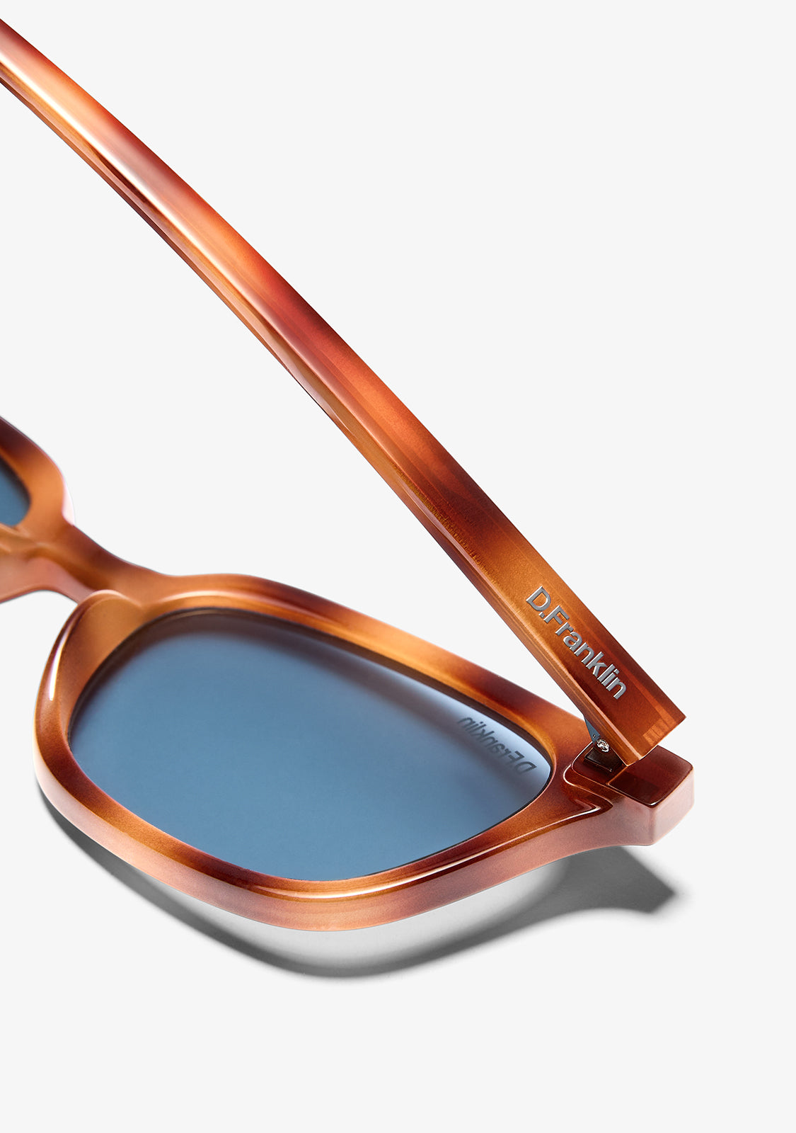 The Hackney Amber Tort / Blue sunglasses by D.Franklin combine a retro-inspired rectangular silhouette with a clean, contemporary design. Their tortoiseshell-finish frame is paired with blue lenses, creating a fresh and sophisticated contrast that adds personality to any look.