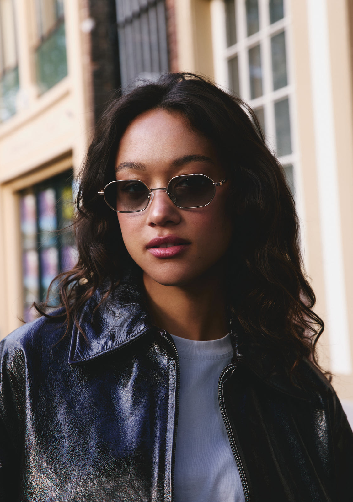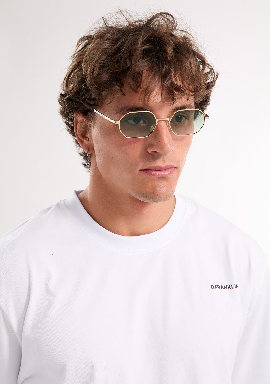 The Square Legacy design features a metallic finish with a hexagonal aesthetic. Its gold-tone frame is paired with gradient green anti-reflective lenses that allow a subtle view through and define the facial features. The front measures 141 mm, and the lens width is 54 mm. The temples are 140 mm long and incorporate our distinctive detailing. A retro yet minimalist piece to frame any outfit.