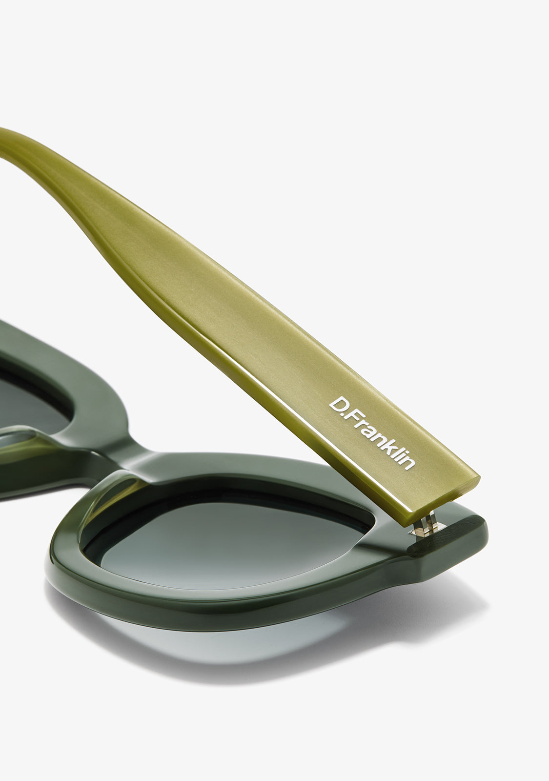The Holly Green / Gradient Green by D.Franklin stand out for their sophisticated design and advanced functionality. With a frame, bridge, and temples made from acetate, these sunglasses provide durability and a premium feel, ensuring all-day comfort.