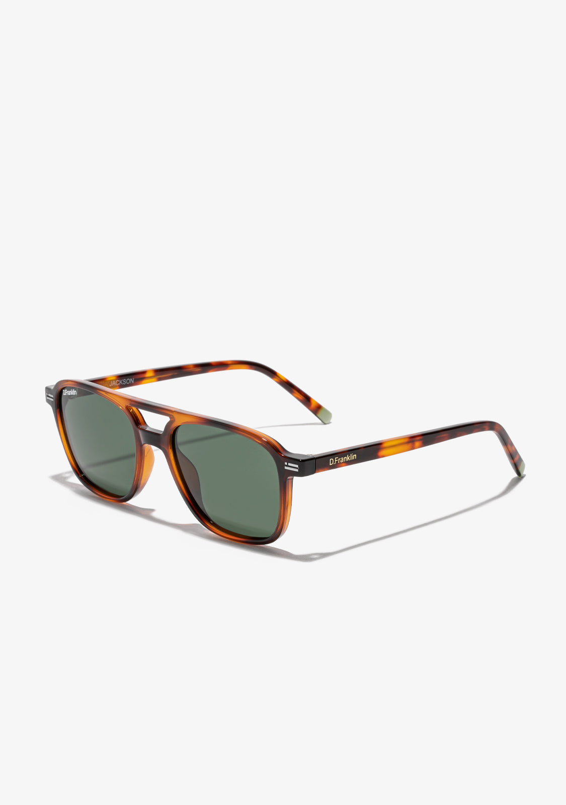 Sunglasses with an extralight frame and stylish design that evokes the most iconic models of the 80s. The brand new Jackson Square Shiny Demi / G15 brings a design that stands out by its double bridge, carey colours and the quality of its materials.