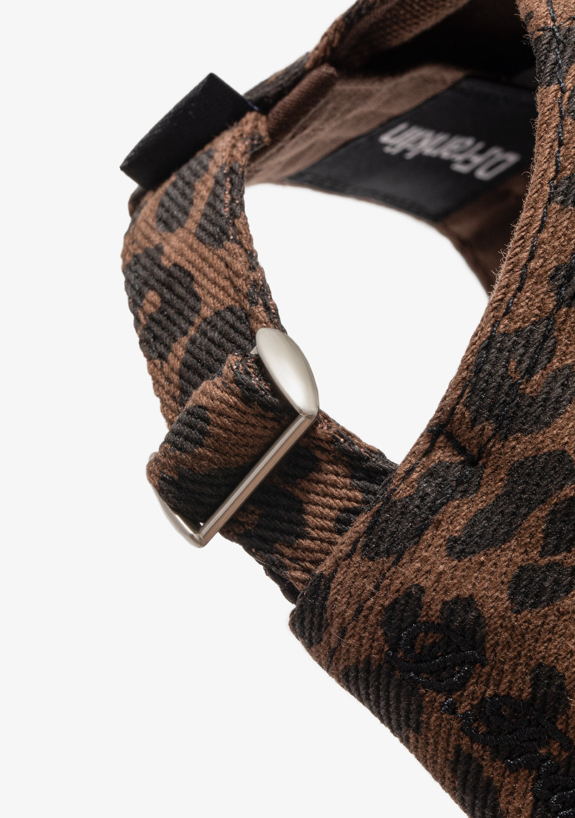 - Chenille patch on the visor with leopard design
