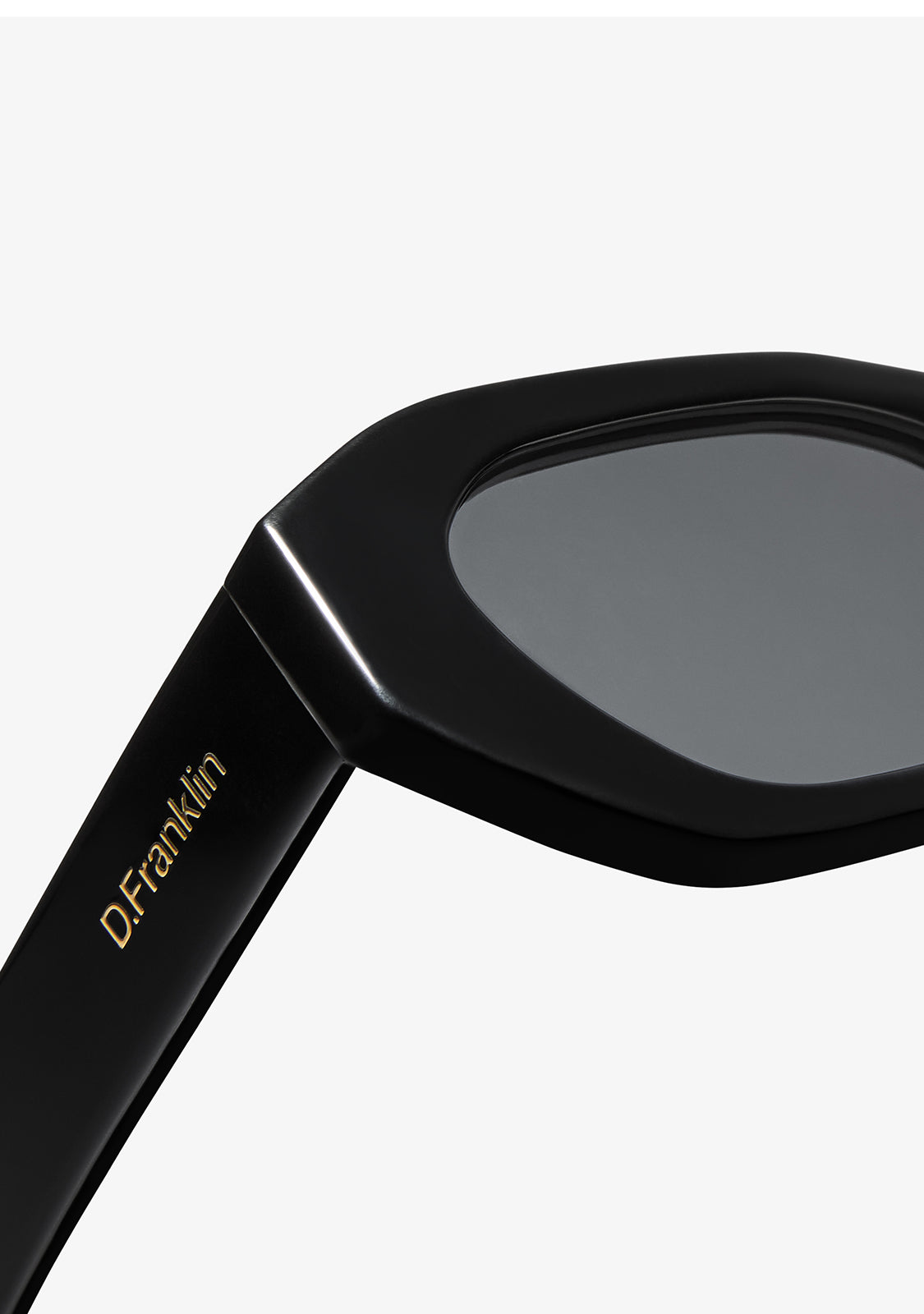 Meet the Meike Black / Black — a vintage-inspired silhouette finished with signature D.Franklin details, including the logo engraved on the temples and the emblem on the lens. Designed with a 51 mm lens width and a 141.3 mm front, it offers a balanced fit, completed with 140 mm temples and a 20.5 mm bridge.