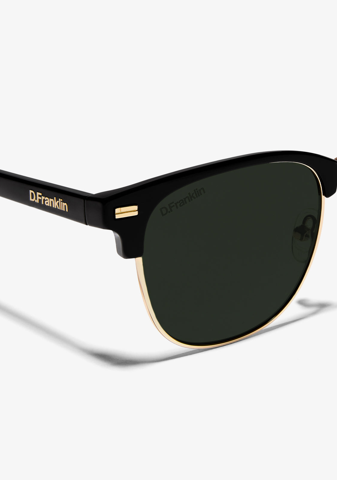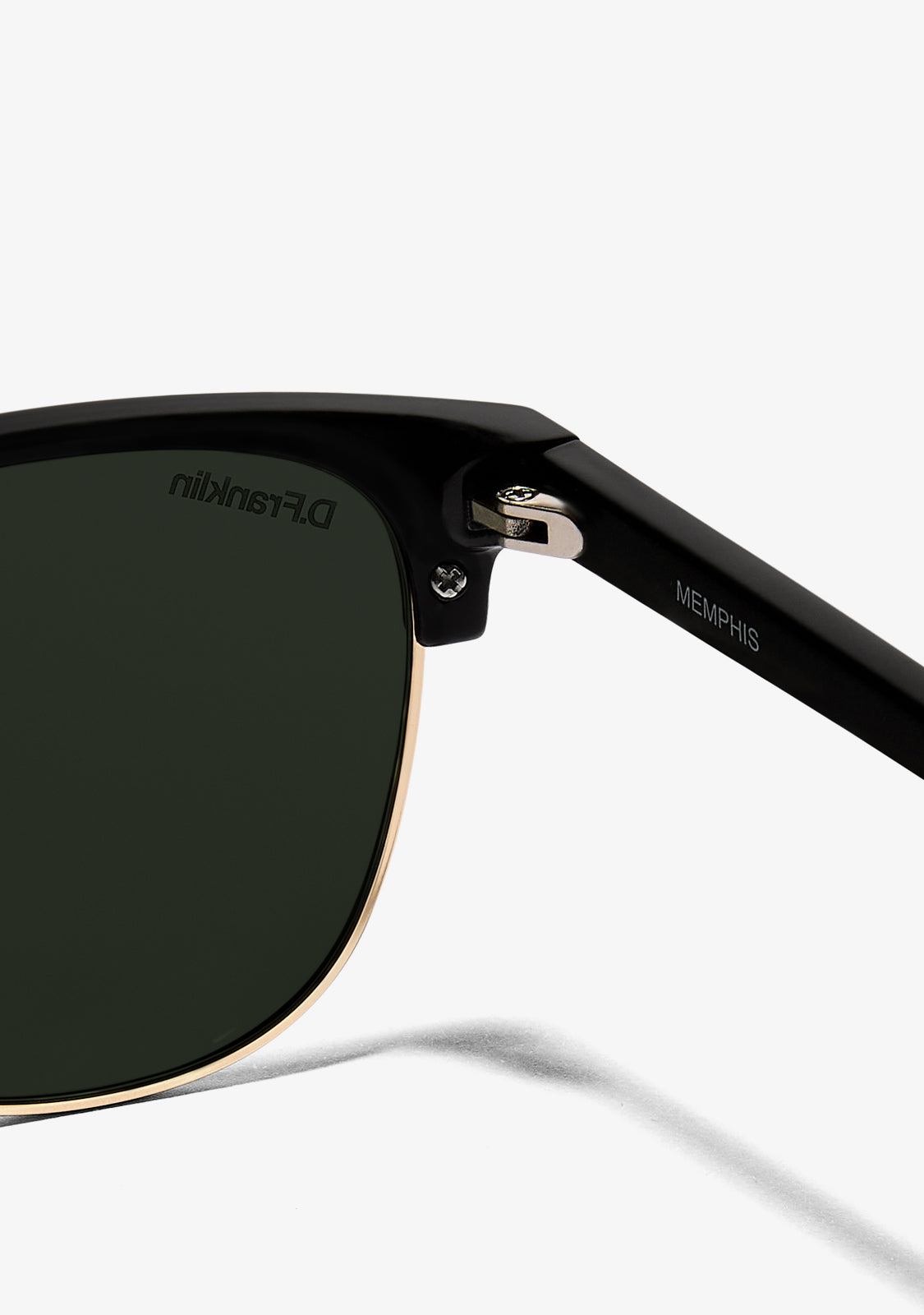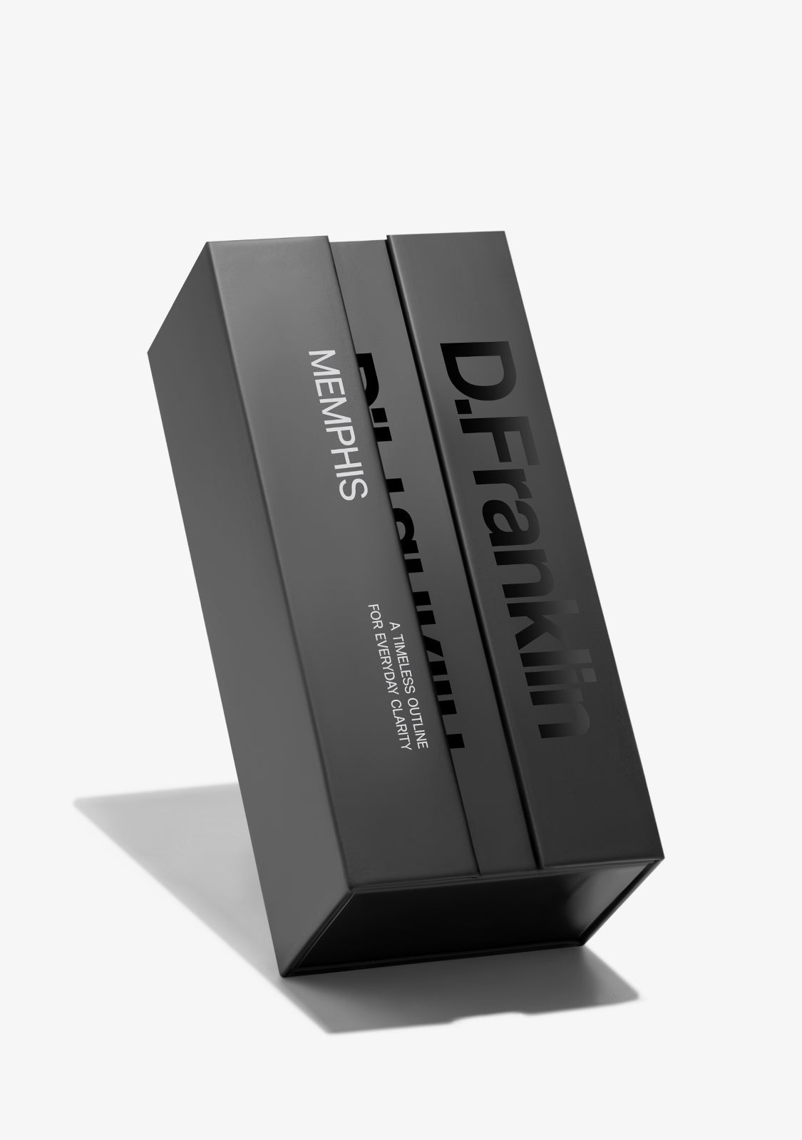 Memphis in Black is a retro-inspired silhouette updated with clean, modern lines. Finished with signature D.Franklin touches, including the logo engraved on the temples and the emblem on the lens.