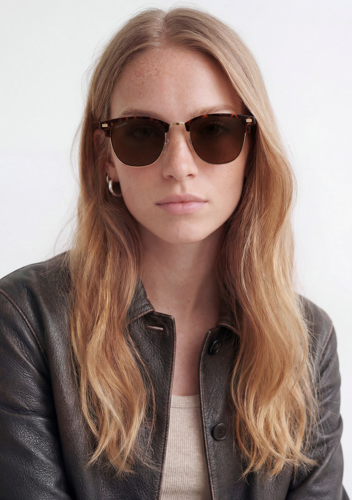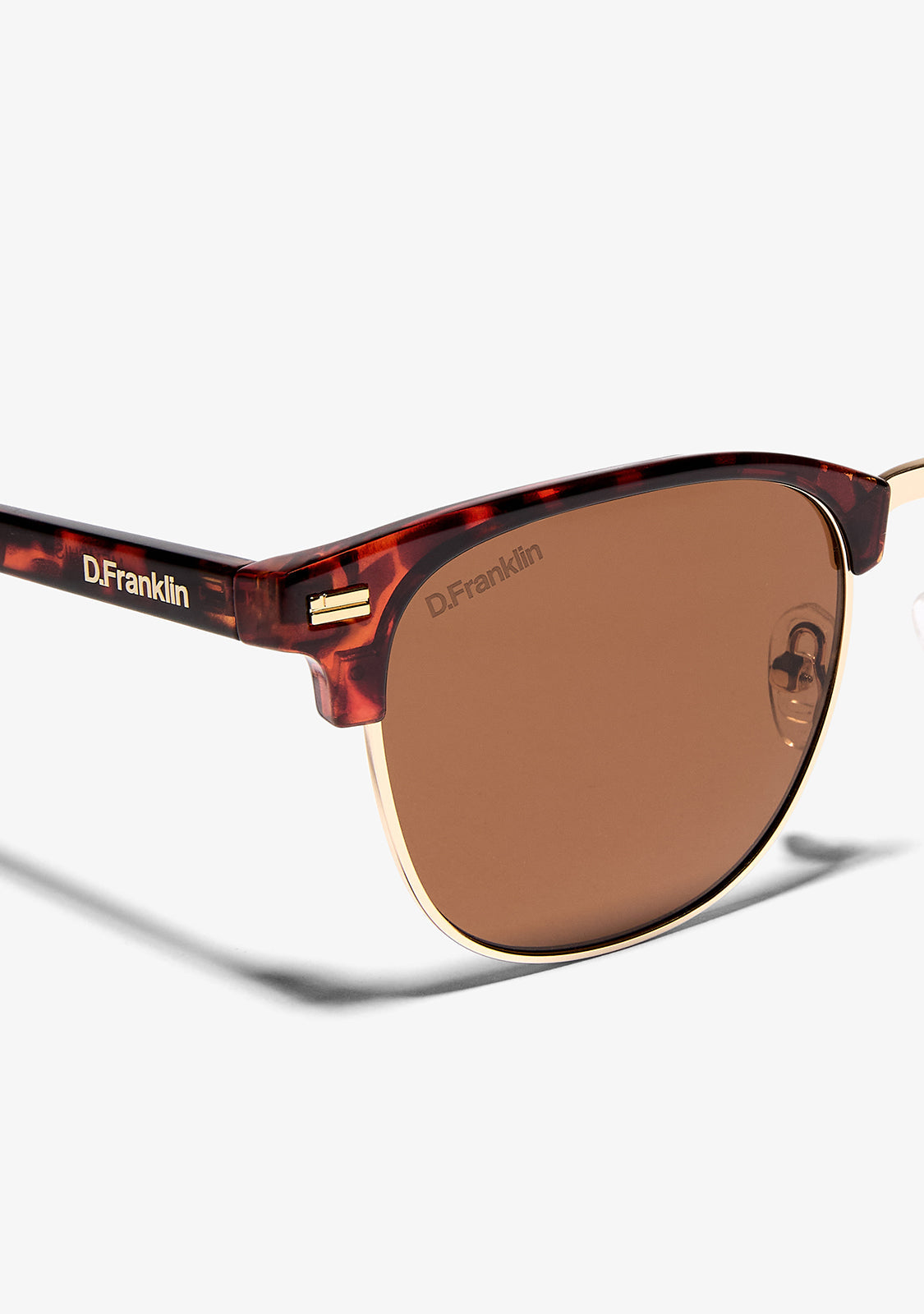 Memphis in Tort is a retro-inspired silhouette updated with clean, modern lines. Finished with signature D.Franklin touches, including the logo engraved on the temples and the emblem on the lens.