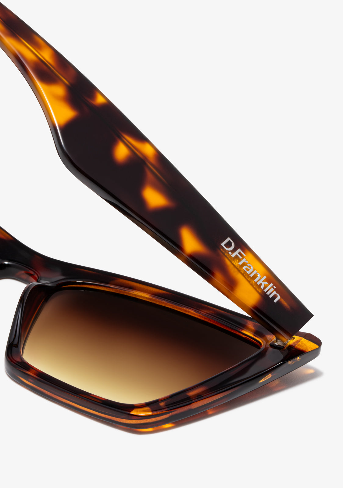 Our Monaco model in brown tones features the most distinctive D.Franklin details, the logo engraved on the temples and emblem on the lens. The lens width is 55 mm and the front is 152 mm. The side temples are 150 mm long, perfect for all faces.