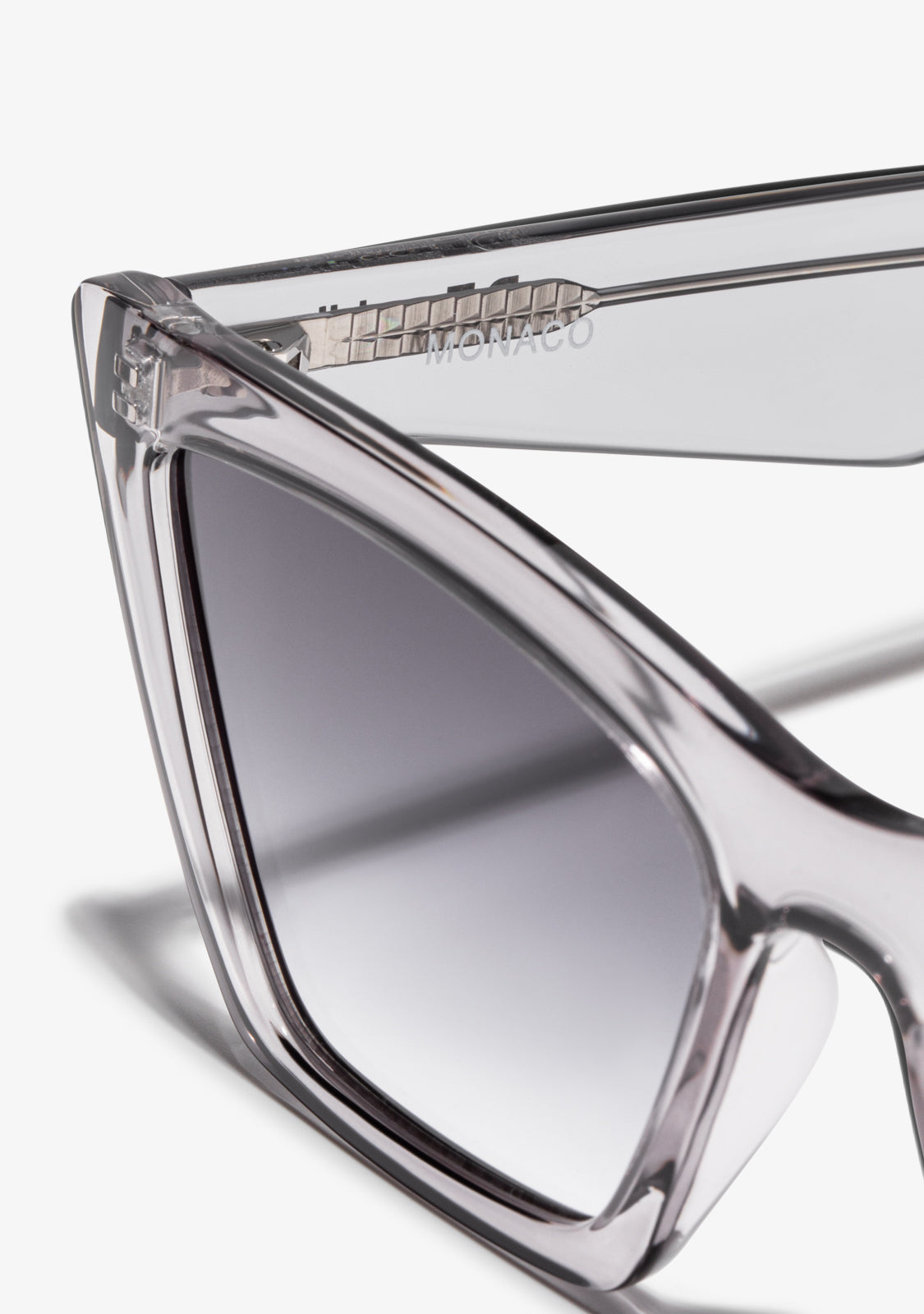 Sunglasses with clear cat-eye frames. A timeless design for your most distinctive looks.