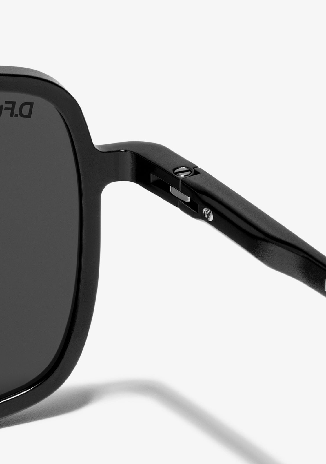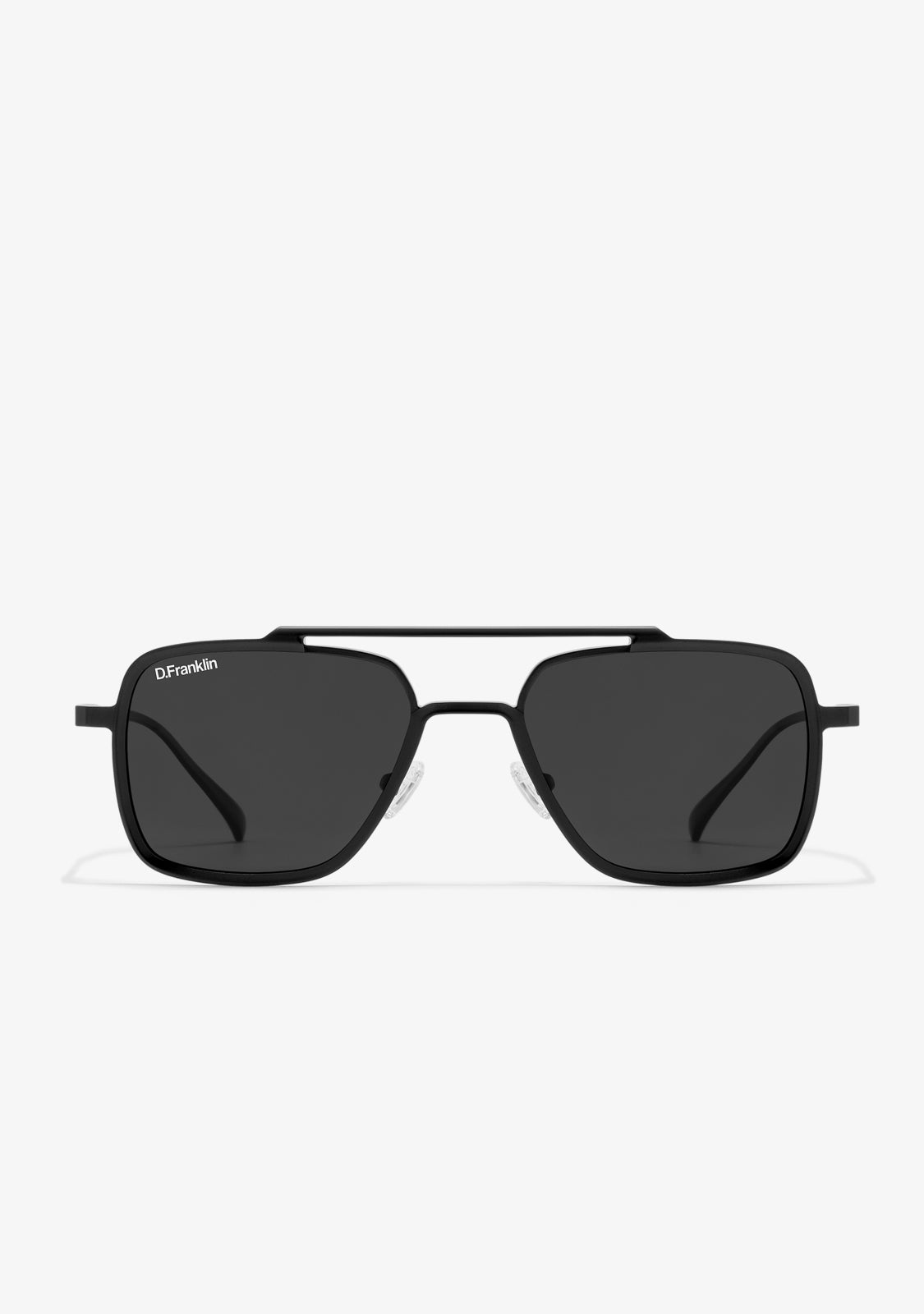 Thanks to their aluminium construction, these glasses are ultra-lightweight. Black polarised lenses and a dark frame reinforce the distinctive design. These sunglasses feature our emblem on the right lens and a metallic logo on the side of the temples. It also features a 140mm front frame and 50mm lens width, which fits most faces. The temples are 138 mm long.