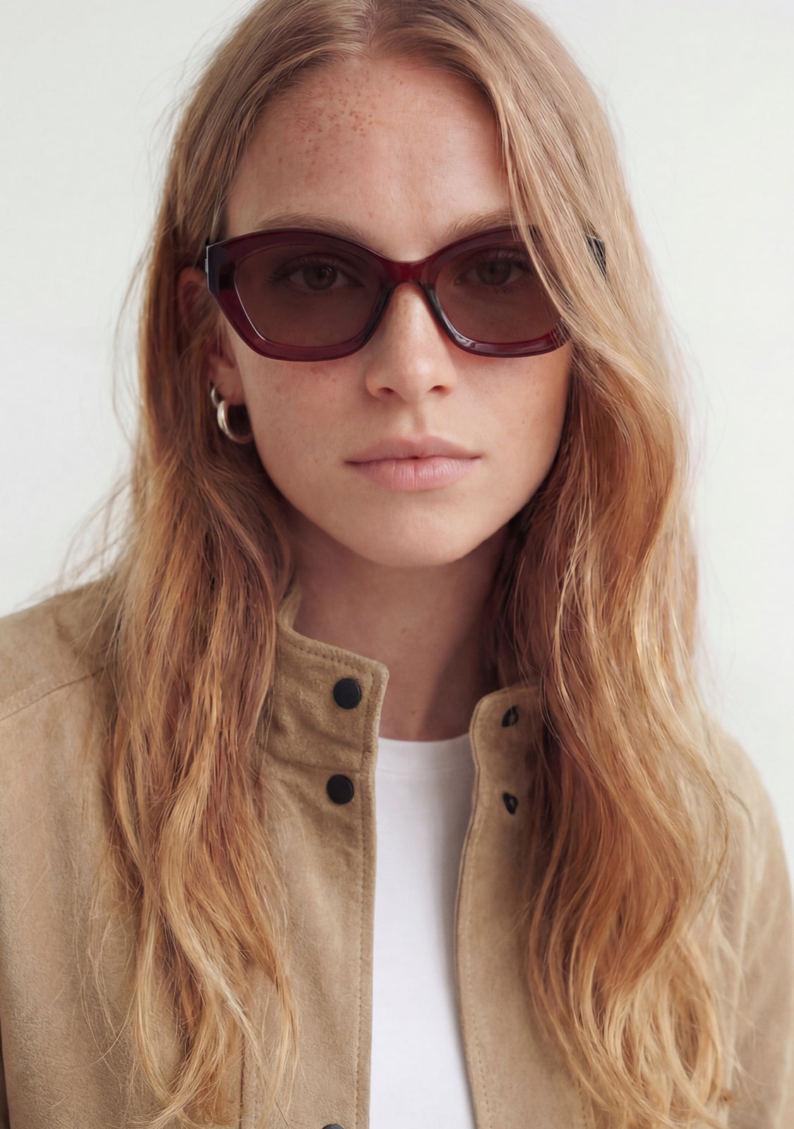 Sunglasses with cat-eye frames and a sleek, timeless design that highlights lifted corners and a defined top line. The new Nola Brown / Brown delivers an all-brown look with a bold, polished silhouette made for everyday wear.