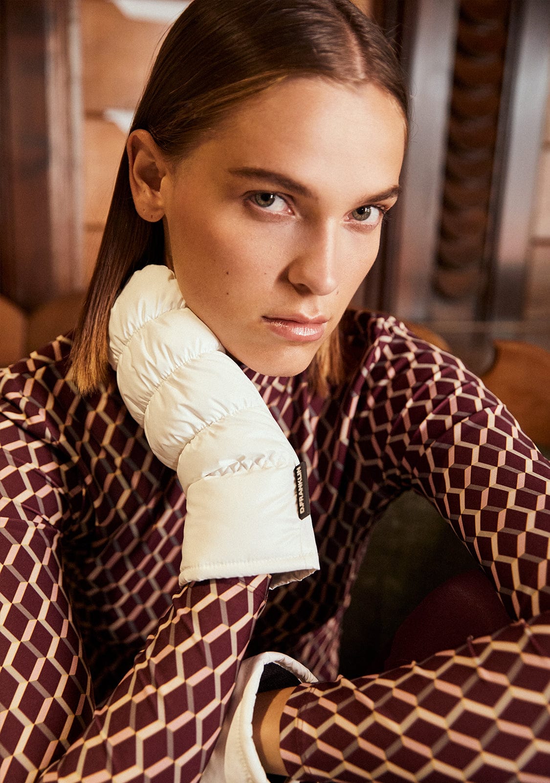 We're going nordic with this white model with a quilted textured finish. It also features water-repellent fabric and our emblem on the outer black label.