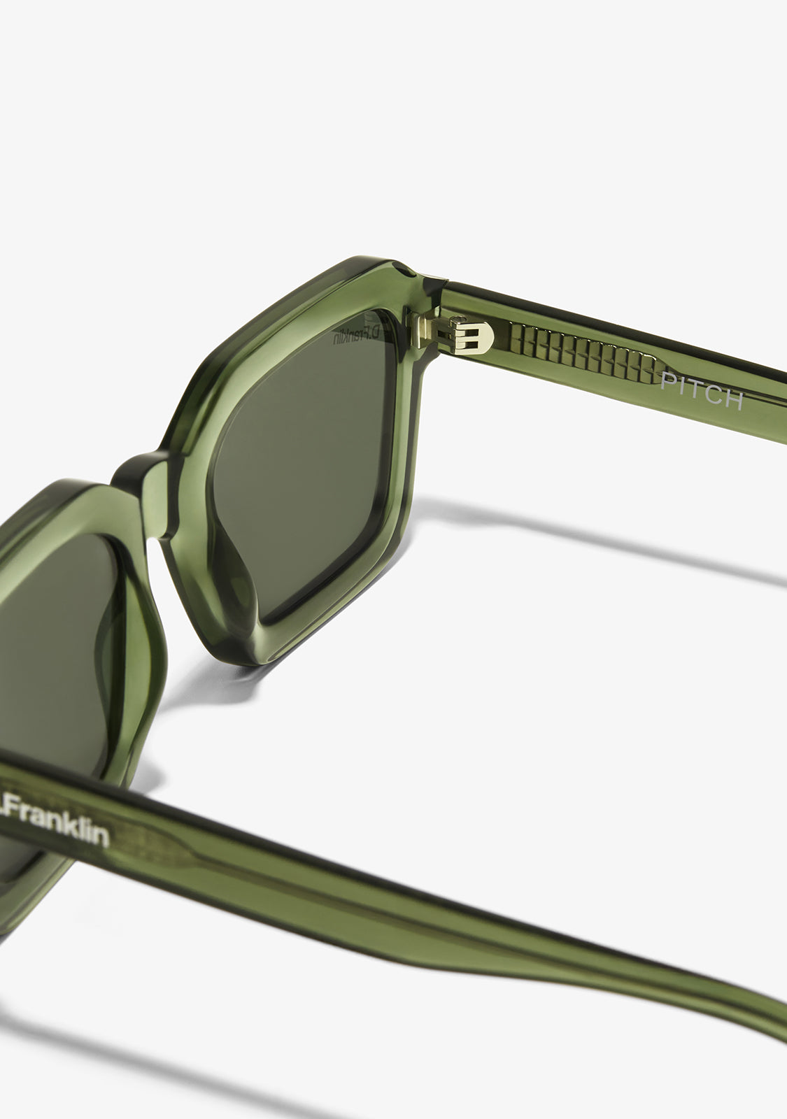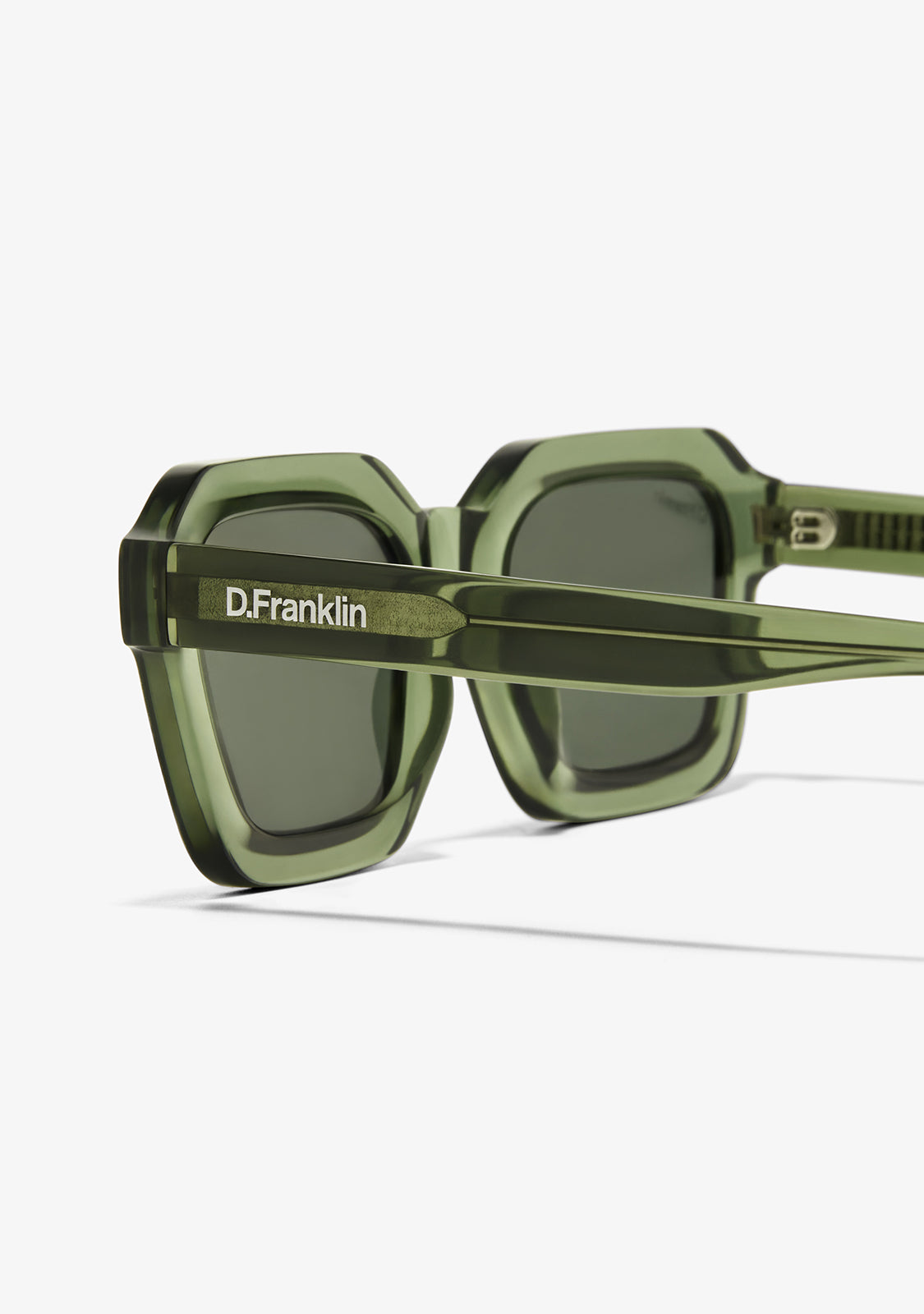 The Pitch Green / G15 sunglasses by D.Franklin offer an elegant and minimalist design that combines comfort and functionality in every detail. Fully crafted from acetate, these sunglasses are renowned for their durability, lightweight feel, and comfortable fit.