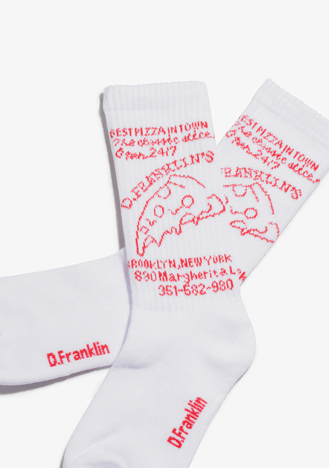 Two-pack of comfortable, versatile socks made for everyday wear. The Pizza Socks 2 Pack White-Navy features colour-block designs in sand and peach tones, adding a modern touch to any look. With a round cut that fits smoothly around the foot, they offer secure support without feeling tight. Branded details add style and personality. Perfect to pair with trainers or sports footwear.