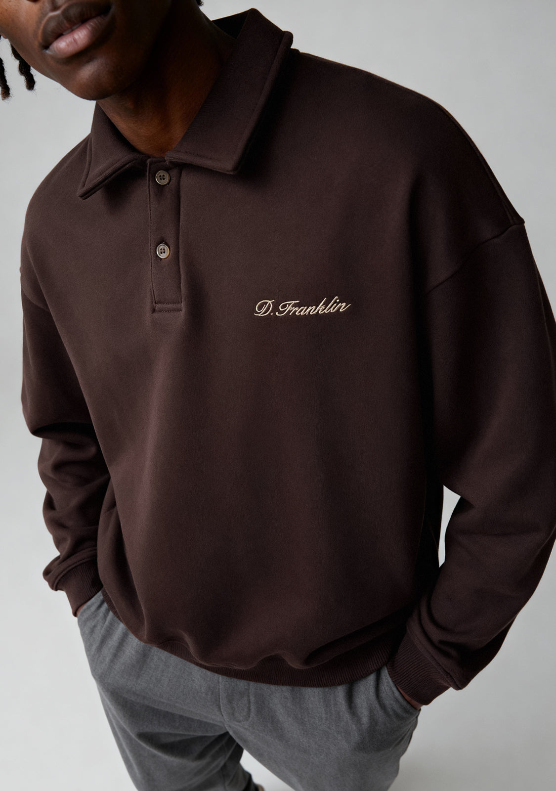 Polo Sweatshirt Brown is a unisex sweatshirt with a clean polo design. It’s an easy-to-wear essential that brings warmth to your everyday look.