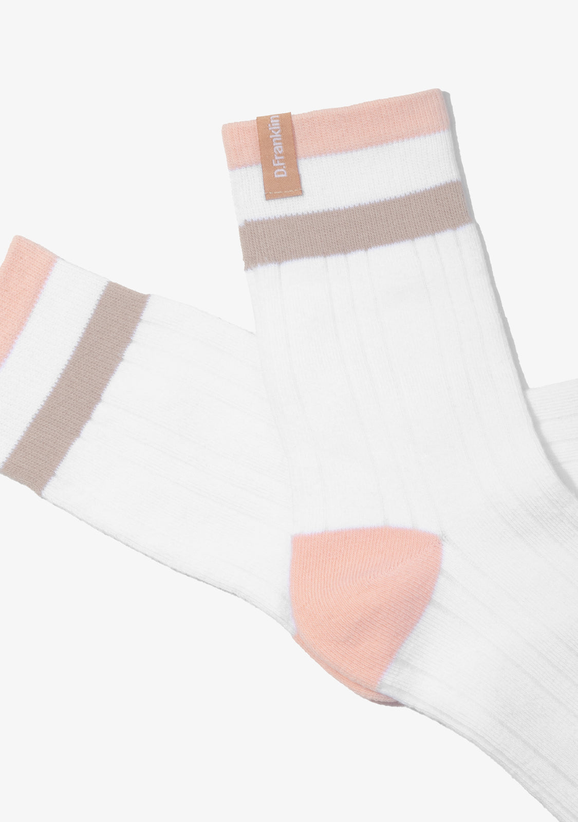 Retro 3 Stripes Cuff Socks 2 Pack Peach-White