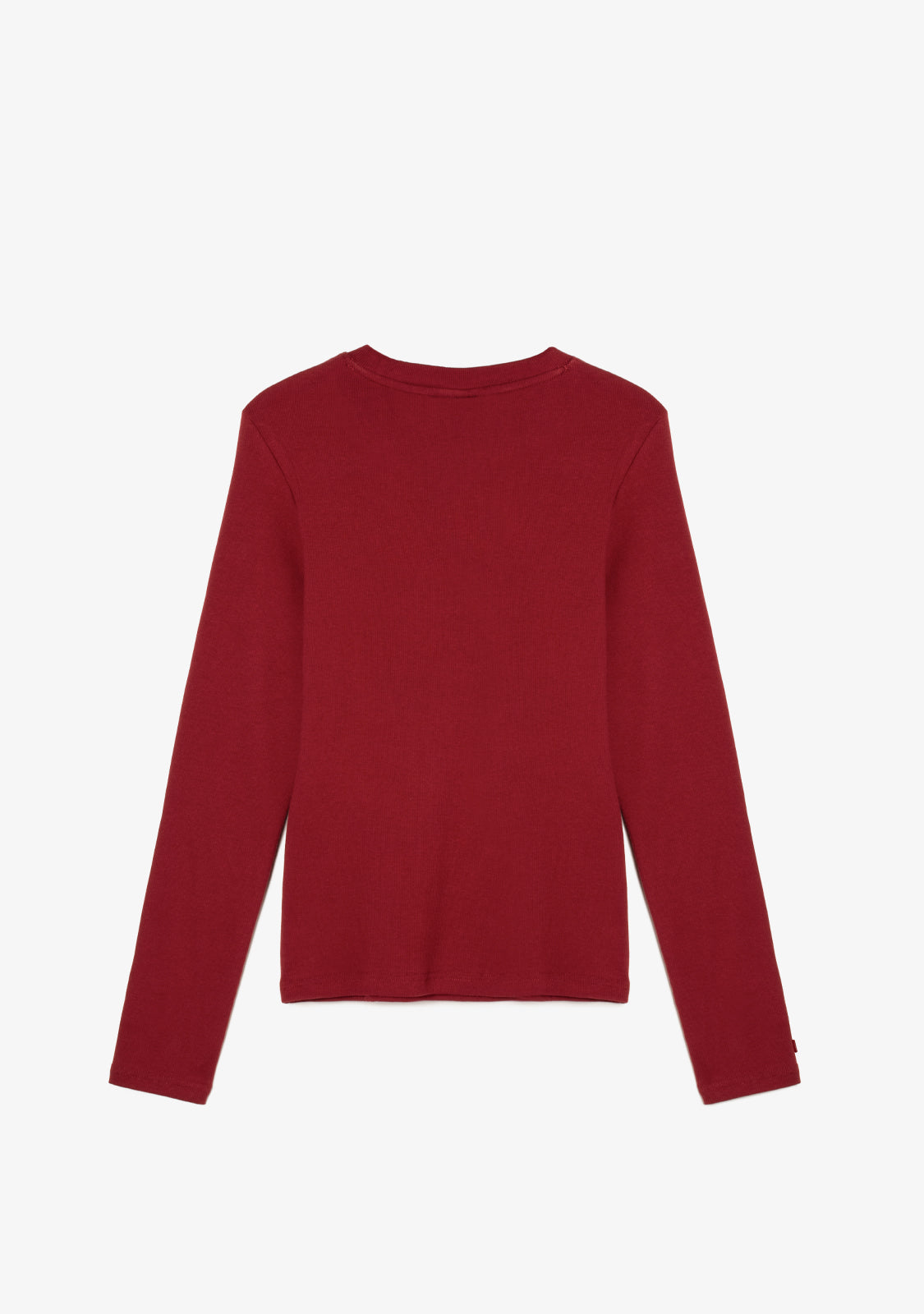 The Rib Long Sleeve Top Burgundy by D.Franklin is a long-sleeve top that stands out for its modern and elegant design. Made with 94% cotton and 6% spandex, and a 280 gsm weight, this garment is soft and light, perfect for maintaining comfort throughout the day.