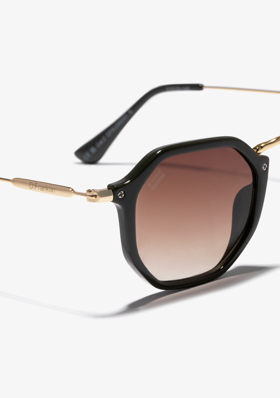 Polycarbonate lenses and a dark green octagonal contour reinforce the iconic style. It features our signature D.Franklin details: the logo engraved on both metal temples and our emblem on the right lens. With a 51mm lens width and 148mm front frame, these glasses enhance the features of any face. The stainless steel side arms are 145mm long.
