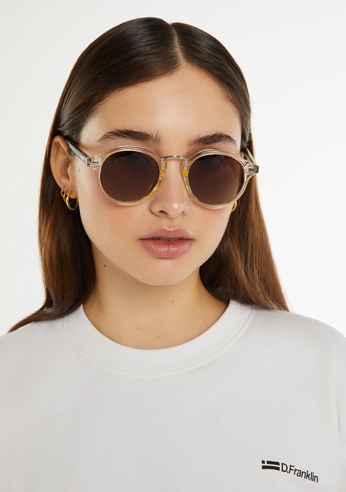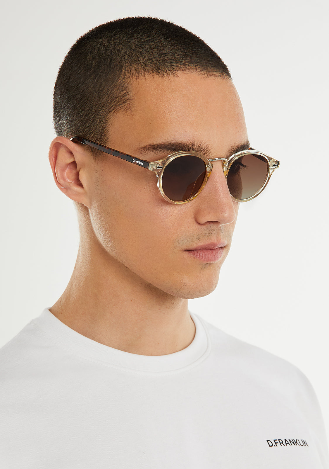 Rediscover our Roller silhouette with a new impeccably finished frame. This model is designed in brown tones and features our signature D.Franklin details: logo engraved on both temples and our emblem on the right lens. The lens width is 49 mm and the front lens width is 140 mm. The side temples are 145 mm long.