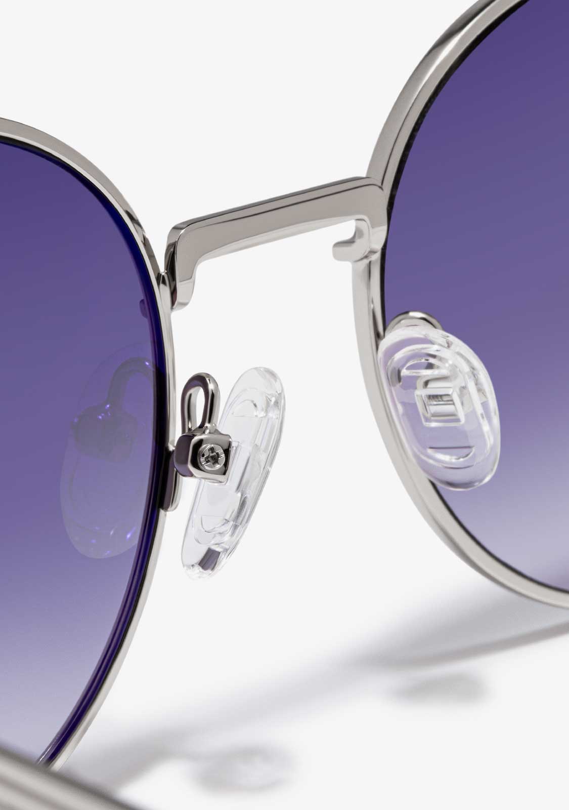 Translucent sunglasses with a round design. The legacy of the most iconic pieces from the 70s is combined with a selection of modern details.
