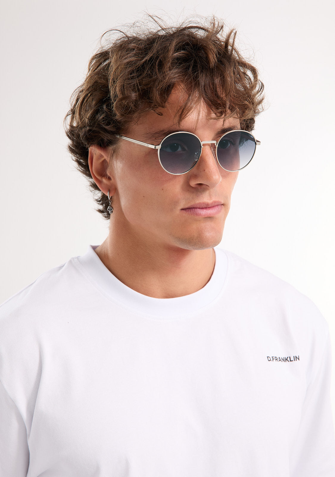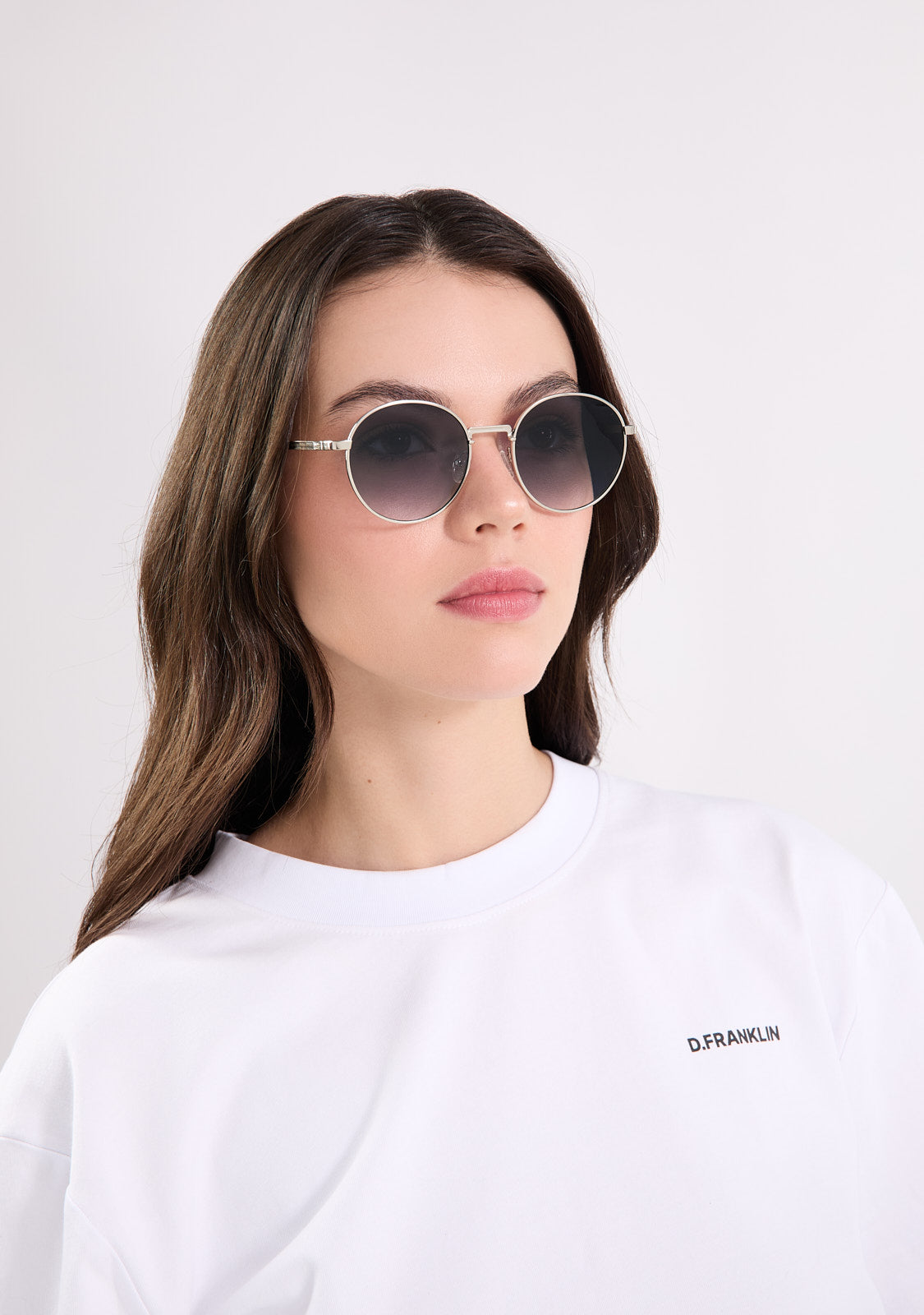 The Round Legacy design features a metallic finish with an oval aesthetic. Its silver-tone frame is paired with gradient grey anti-reflective lenses that allow a subtle view through and define the facial features. The front measures 139 mm, and the lens width is 52 mm. The temples are 140 mm long and incorporate our distinctive detailing. A retro yet minimalist piece to frame any outfit.
