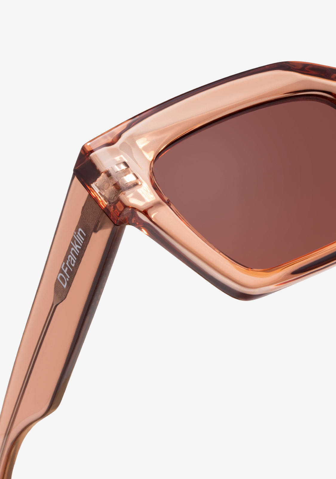Our Tokyo model in brown tones and vintage style features the distinctive details of the D.Franklin brand, the logo engraved on the temples and the emblem on the lens. The lens width is 51 mm and the front is 143 mm. The side temples have a length of 145 mm.