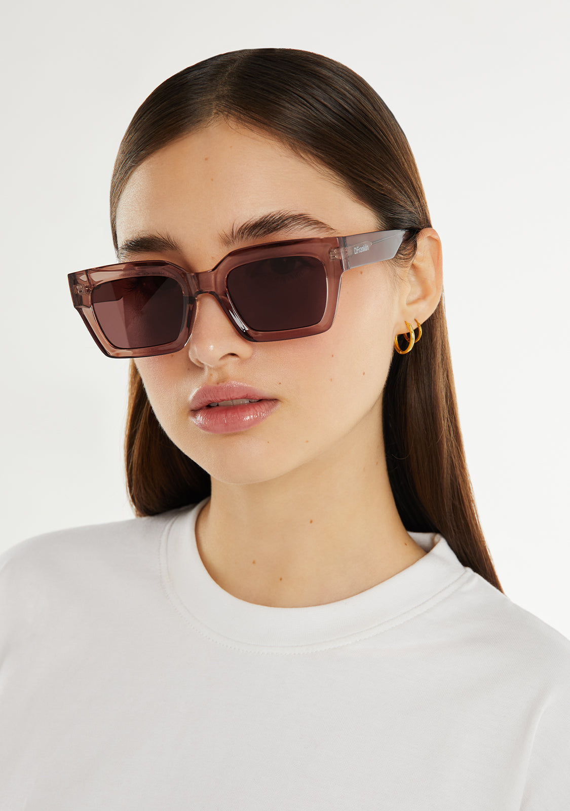 Sunglasses with square frames and a transparent finish. An essential piece to give your everyday looks the ultimate fashion edge.