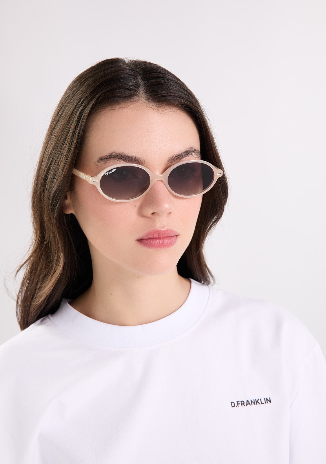 Discover the Ultra Light Ellipse Cream / Brown by D.Franklin, sunglasses designed for those who seek to combine style and functionality in a unique accessory. With a TR90 frame and bridge, an ultra-lightweight and durable material, along with acetate temples, they provide a sturdy structure and comfortable fit for extended wear.