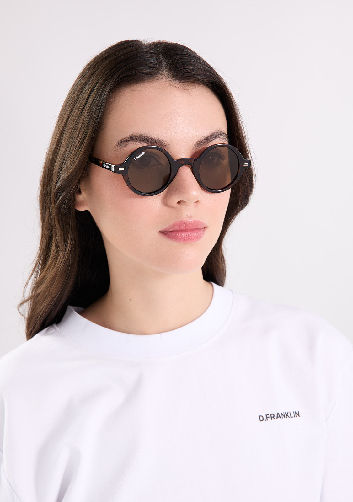 The Ultra Light Round Tort / Brown sunglasses by D.Franklin stand out for their minimalist design and superior functionality. With a TR90 front frame, these sunglasses combine lightweight construction and durability, making them ideal for extended wear. The acetate temples ensure a comfortable fit and an elegant finish.