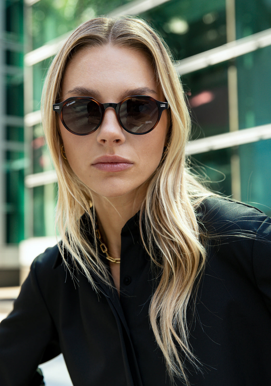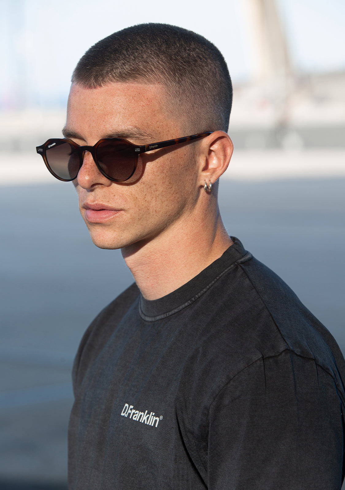 Its round polarized lenses tinted in brown and TR90 frame in carey highlight the timelessness of this model. It features our distinctive D.Franklin details: the logo engraved on both metal temples and our emblem on the right lens. With a lens width of 47 mm and a front frame of 138 mm, these glasses flatter most faces. The side temples have a length of 145 mm.