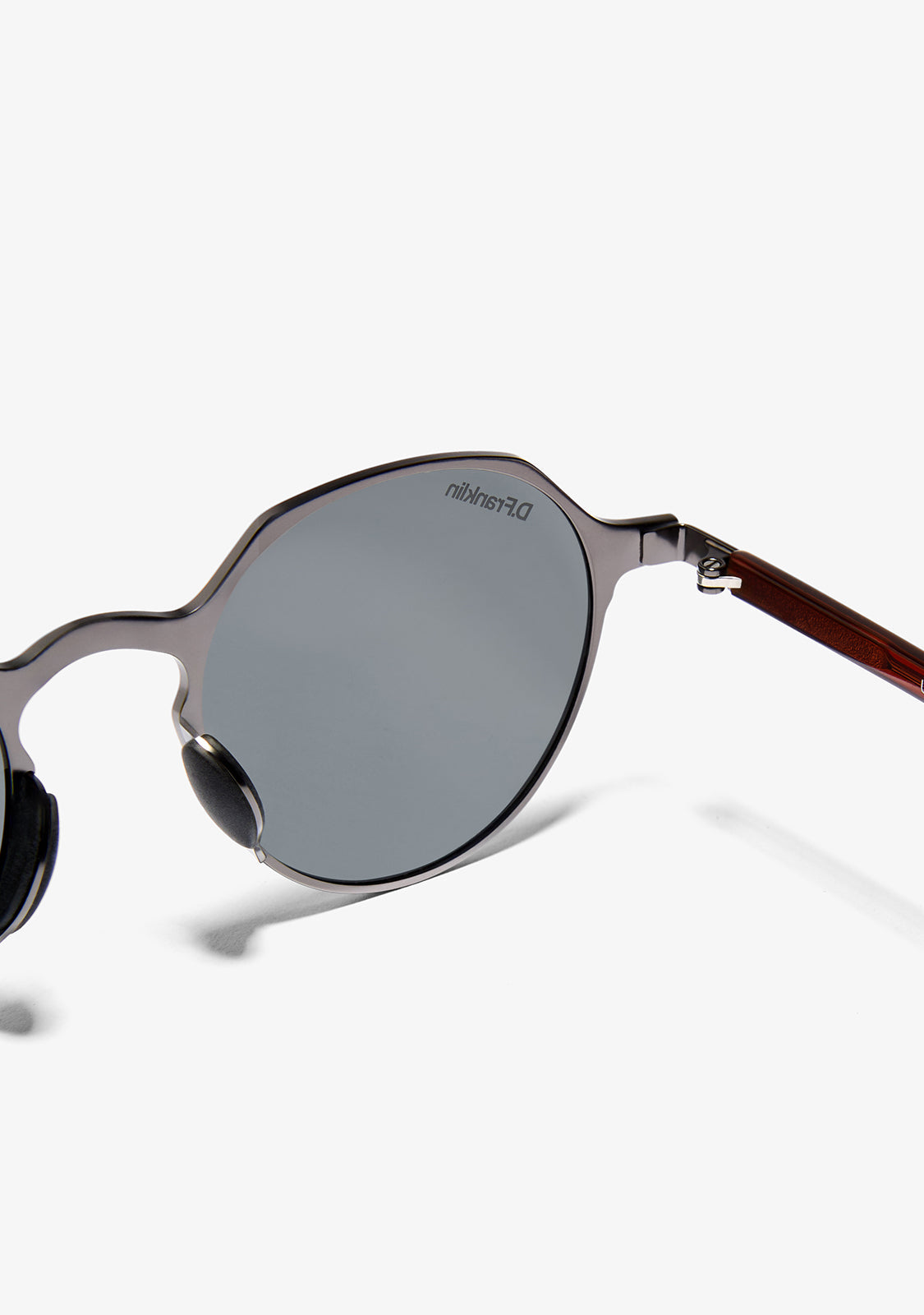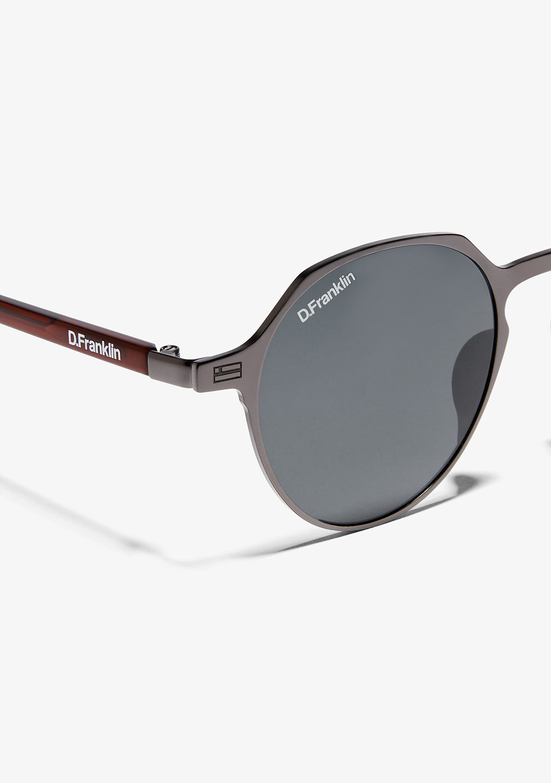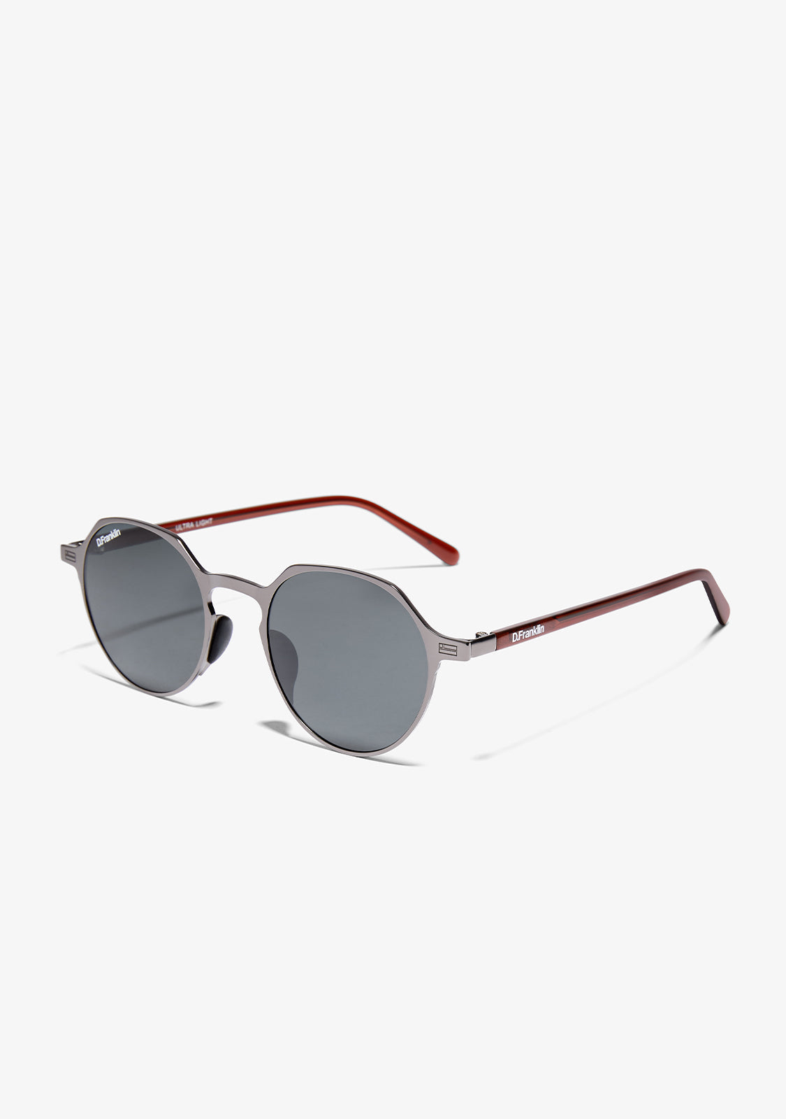 Ultra Light S Round Metal Gun / Black combines a classic design with a retro feel, reinterpreted in a round, minimalist, and elegant silhouette. Its grey metal frame contrasts with brown temples for a modern and original finish.