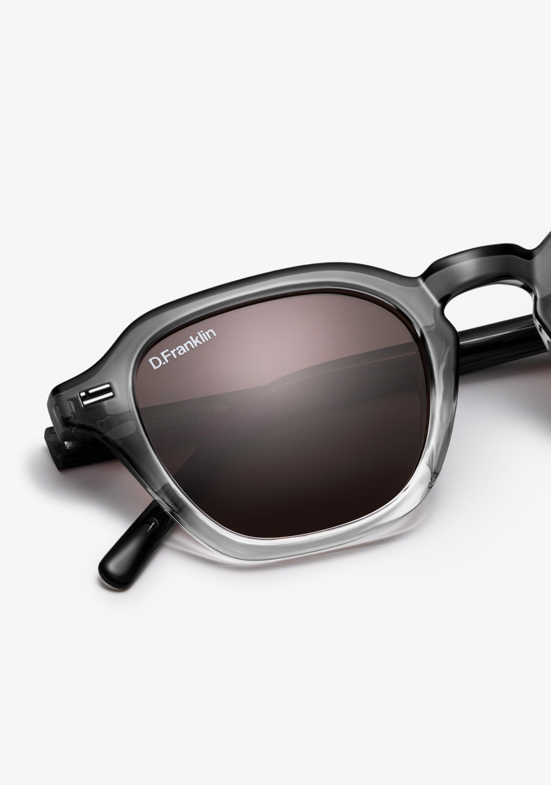 The Ultra Light S Square Gradient Grey / Brown sunglasses by D.Franklin combine contemporary design with advanced functionality. Crafted with a TR90 front and bridge, these sunglasses are lightweight yet durable, while the acetate temples provide a comfortable fit and a sophisticated touch.