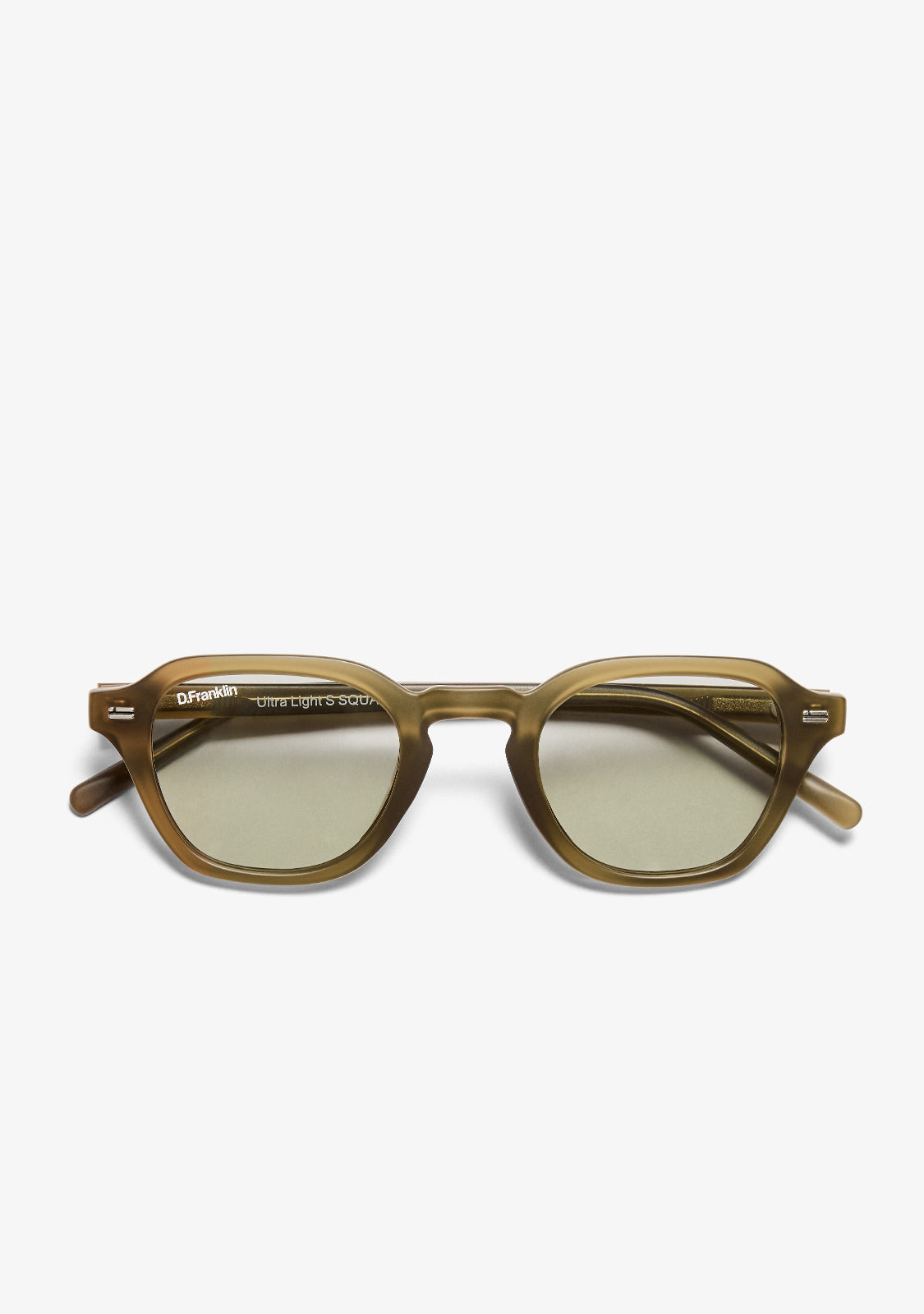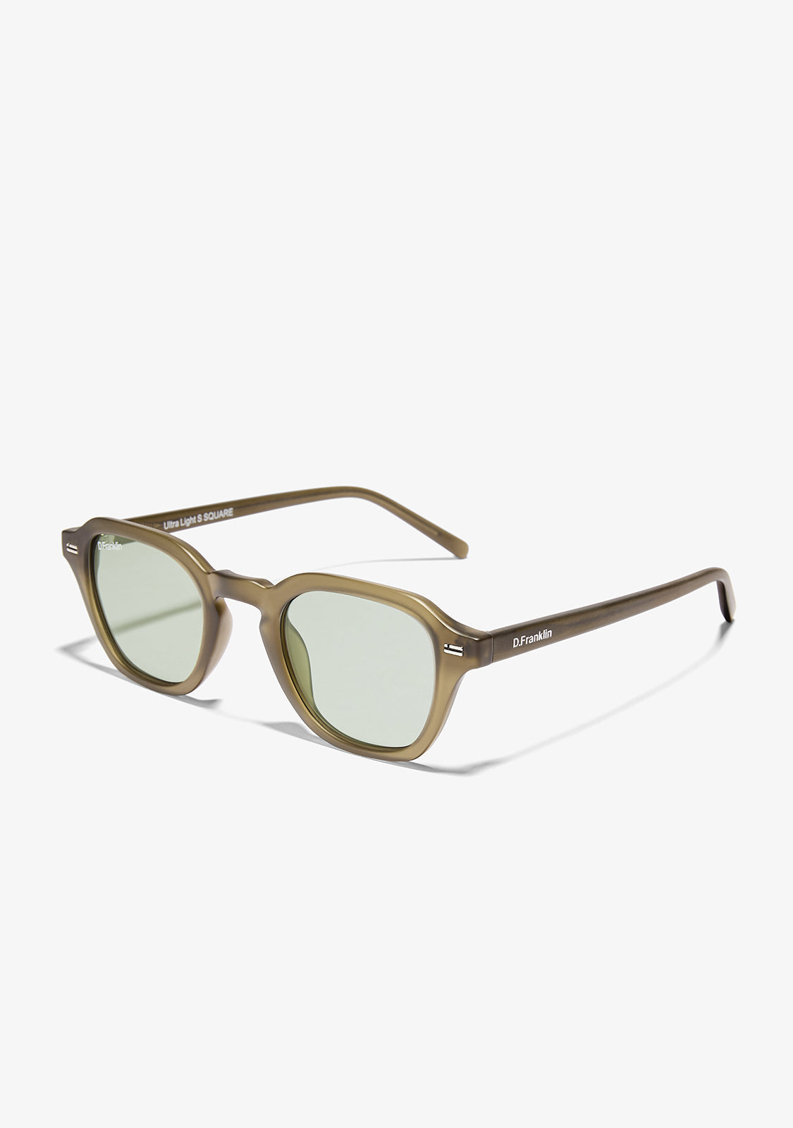The Ultra Light S Square Matte Green / Photochromic Green sunglasses by D.Franklin combine contemporary design with advanced functionality. Crafted with a TR90 front and bridge, these sunglasses are lightweight yet durable, while the acetate temples provide a comfortable fit and a sophisticated touch.
