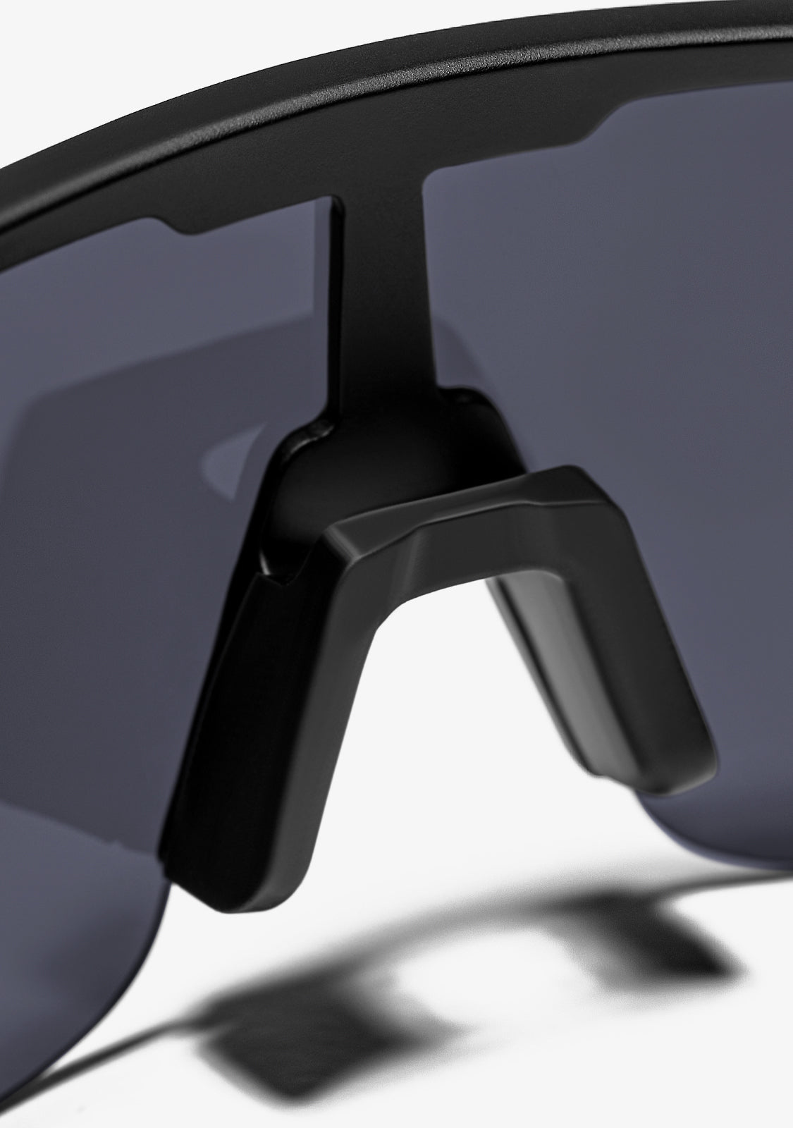 With 130 mm temples, ends, and nose bridge with silicone pads, these sunglasses ensure grip and comfort even in motion.