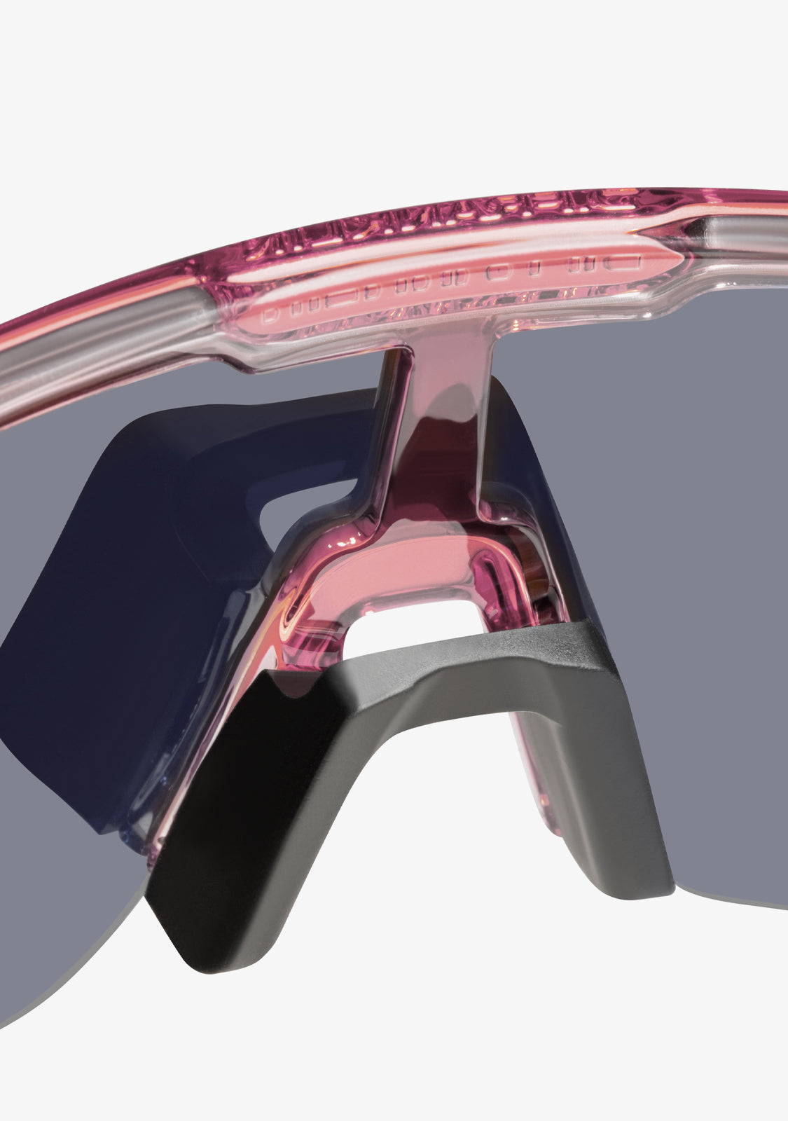 The Wind Fifty Grad Pink / Pink model stands out for its distinctive dual-tone finish and aerodynamic frame that enhances stability and airflow. It features a 144 mm front and 140 mm lenses, precisely engineered to optimize wind resistance. The 130 mm arms display our emblem on both sides, while silicone pads on the tips and nose bridge ensure a secure, comfortable fit.
