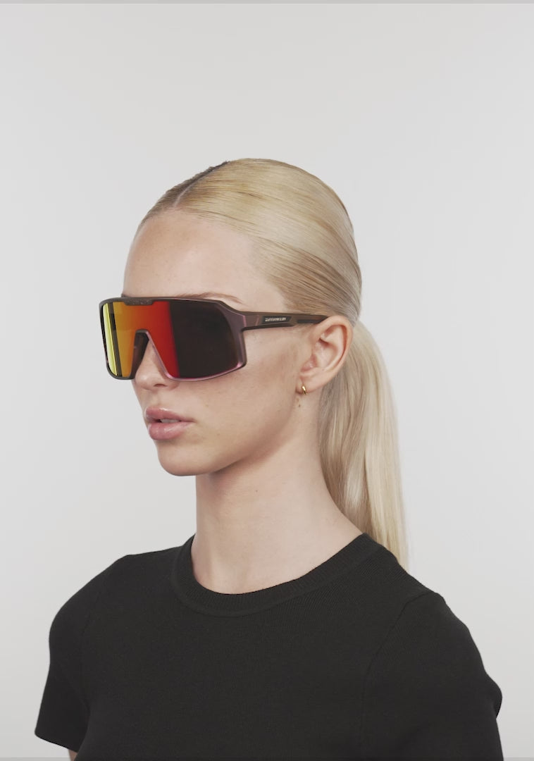 The Wind Limited Iridescent Burgundy / Red model ensures maximum protection and comfort thanks to its red panoramic mirrored lenses and silicone nose pads for a stable, ergonomic fit.